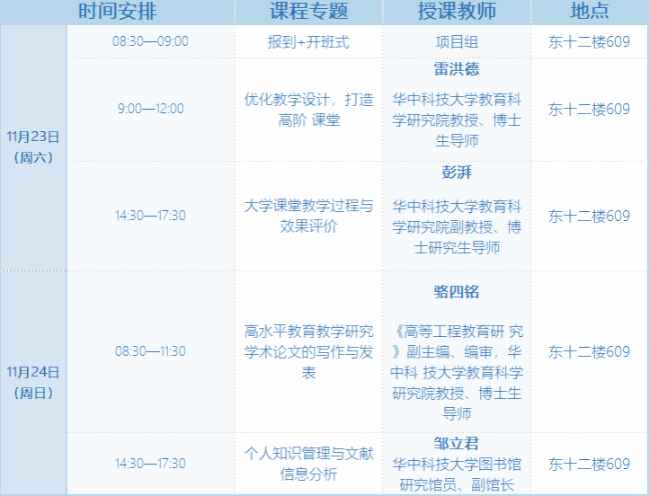 培训地点:华中科技大学东十二教学楼609教室