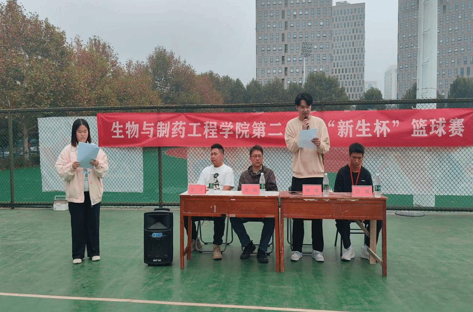 2024年10月14日,生物与制药工程学院团总支于北门篮球场举办的第二十届“新生杯”篮球赛,在一片欢呼声中拉开帷幕。开幕仪式由学院学生会秘书部长安沁欣主持,学生工作办公室主任张明、团总支书记林珑、2024级辅导员余洋出席本次活动。