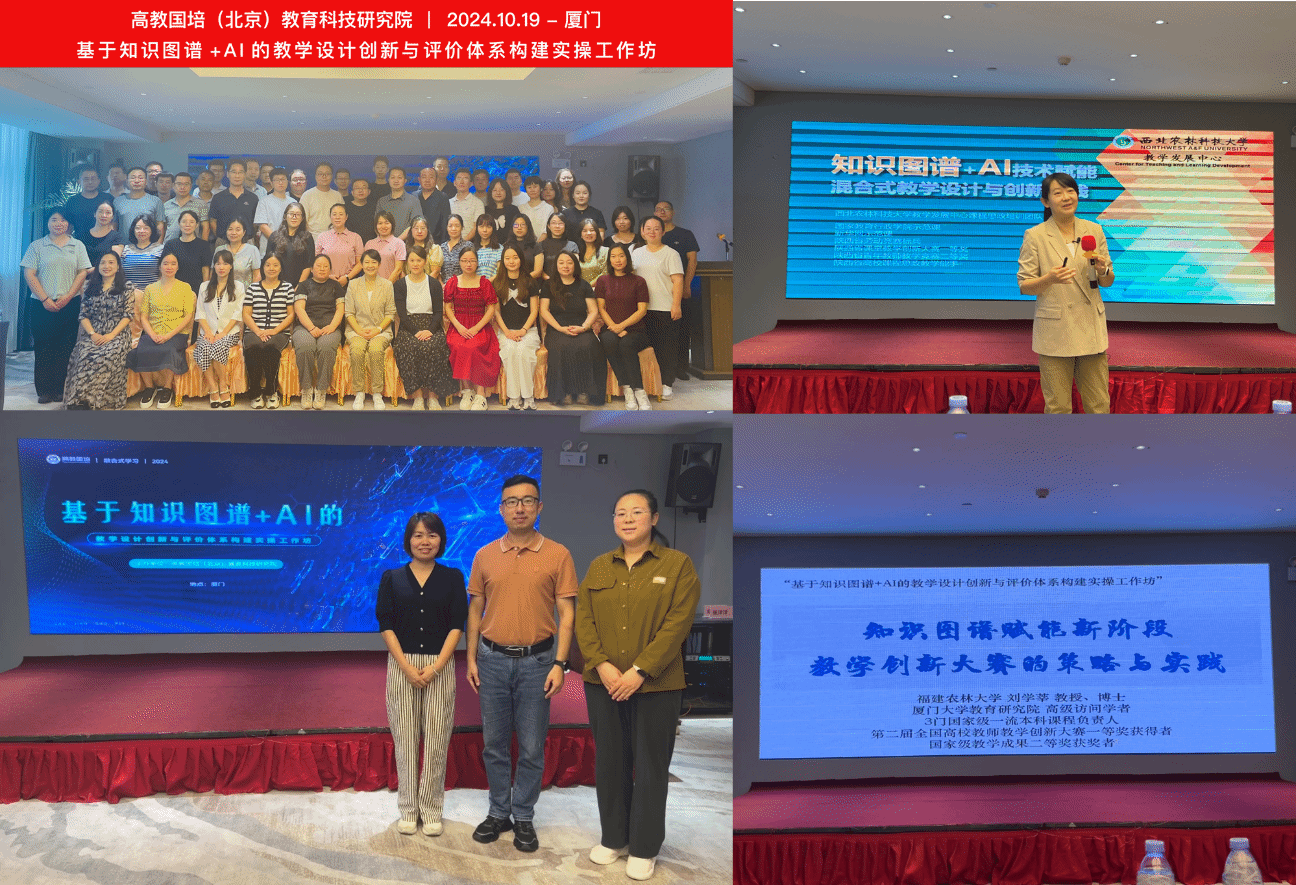 随着人工智能技术的快速发展,知识图谱作为一种新兴的数据结构,在教育领域展现出巨大的潜力。为帮助高校教师深入理解和掌握知识图谱与AI技术在专业课教学设计创新和评价体系构建中的应用实践,实现知识的结构化、关联化和可视化,提升评价的科学性和有效性,一场“基于知识图谱+AI的教学设计创新与评价体系构建实操工作坊”培训会议在厦门举行,此次会议由高校国培主办,于10月18日-10月20日在厦门召开。会议邀请了来自西北农林科技大学的寇小希教授和福建农林大学的刘学莘教授为我们做培训讲解。我院实验中心教师刘桂艳、石炎两位老师参加此次线下培训学习。