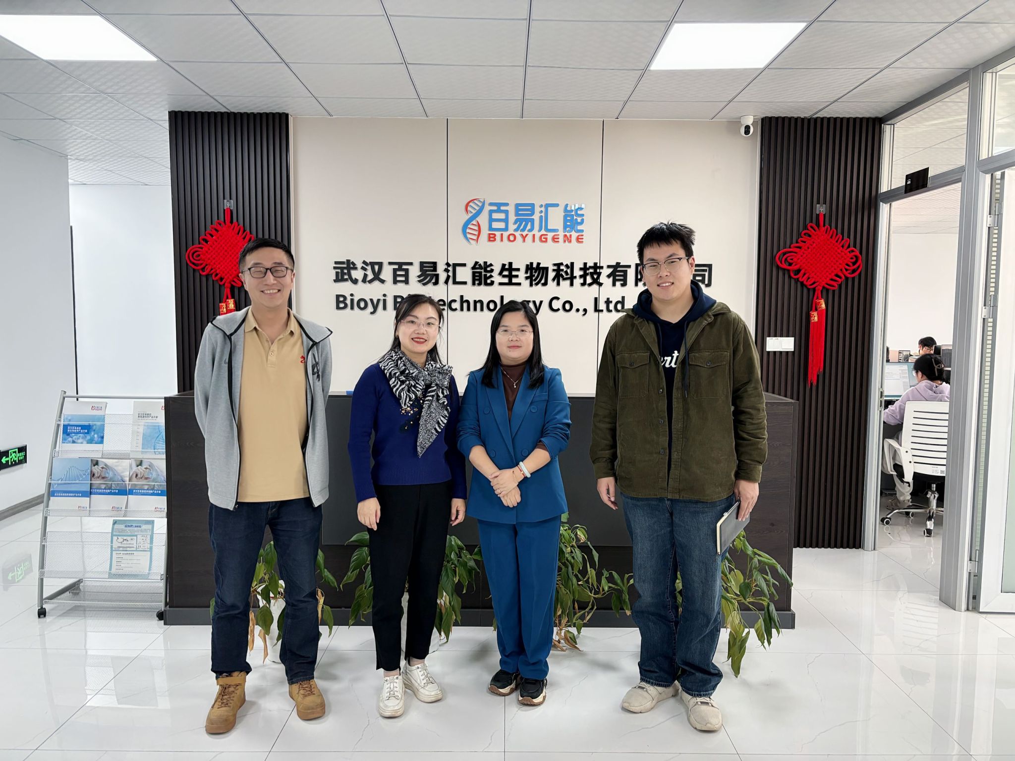 在武汉百易汇能生物科技有限公司,郝主任一行受到了公司负责人的热情接待。双方首先进行了座谈交流,公司负责人详细介绍了企业的发展历程、主营业务、技术创新以及未来规划等方面的情况。郝主任则介绍了学院的学科优势、科研成果和人才培养特色,并表达了与企业开展深度合作的意愿。