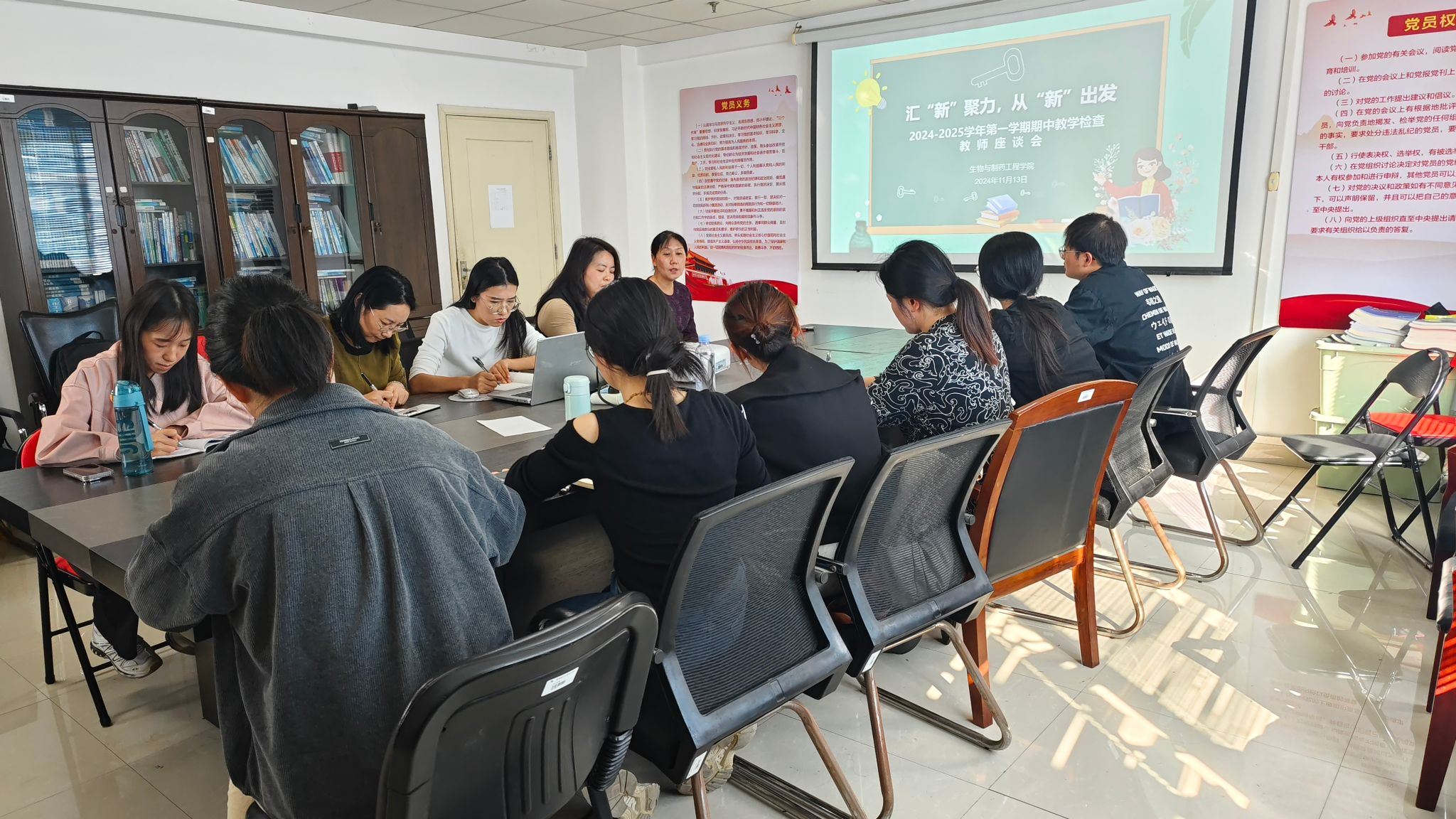 为进一步加强新教师之间的沟通交流,促进新教师的融和成长,生物与制药工程学院于2024年11月13日下午两点,在综合楼1119会议室举办了新教师座谈会。院长程弘夏、教学行政办主任刘玉华老师和学院新进教师参加了交流座谈,座谈会由院长程弘夏教授主持。