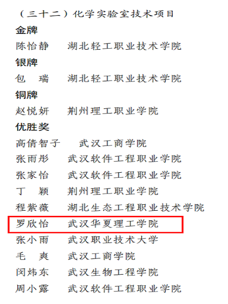 喜报:beat365制药工程1222班罗欣怡斩获湖北省化学实验技能竞赛优胜奖