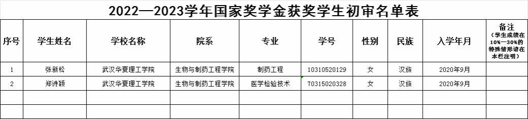根据教育部、财政部关于印发《本专科生国家奖学金评审办法》的通知(教财函〔2019〕105号)、财教〔2021〕310号附1:本专科生国家奖学金实施细则等相关文件及《beat365官方网站学生奖学金管理办法》,经个人申请、学院初审,拟推荐张新松等2名同学为2023年国家奖学金候选人,具体名单如下: