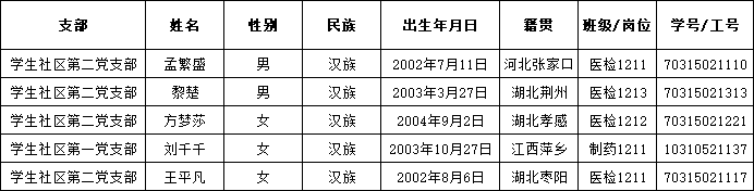 经党支部培养教育和考察,在听取支部委员、培养联系人、党员和群众意见的基础上,支部委员会于2024年3月29日召开党支部委员会议,表决同意将我院学生孟繁盛等5名同学列为党的发展对象并报上级党委备案。根据发展党员工作的有关要求,现将此5名同学名单公示如下: