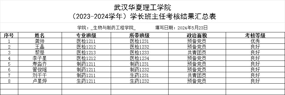 根据《beat365官方网站学长班主任工作条例》文件规定,在个人小结、学生评议、辅导员评议和学院考核小组审批基础上,结合学长班主任工作开展情况,经研究决定,现将2023-2024学年学长班主任考核结果公示如下: