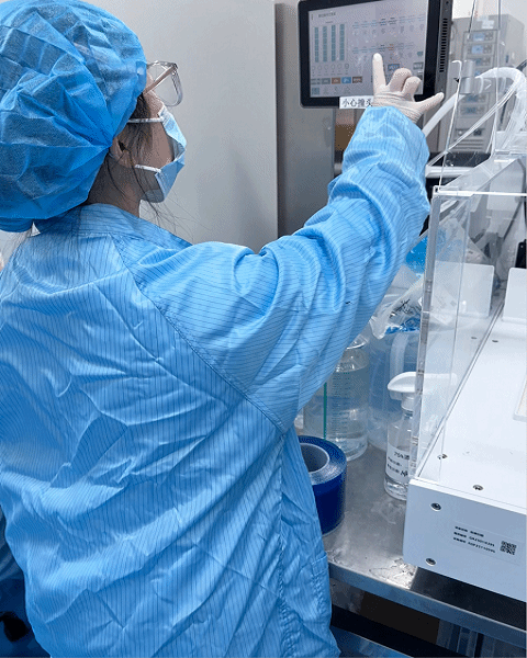 学生们从入职开始的EHS安全培训起步,逐步熟悉了实验室的二更流程与GMP规范;随后进入实验室开始学习,在培训结束后便进入实验室逐步开始学习使用和掌握移液枪的操作、取蛋白样品的全部流程包括SDS-PAGE、HPLC、质谱检测与内毒素检测的样品处理,以及超净台的清洁与紫外消毒;最终能够独立完成取样全流程。在这里,他们接触了很多在学校接触不到的生物制药专业仪器,例如NanoPhotometer N120多通道检测,能够熟练掌握了排枪的移液、加样与数据导出;还接触了HAMILTON等一系列自动化设备,学会使用了高通道移液系统与酶标仪相结合,实现了取样、分装、数据分析全自动化操作。