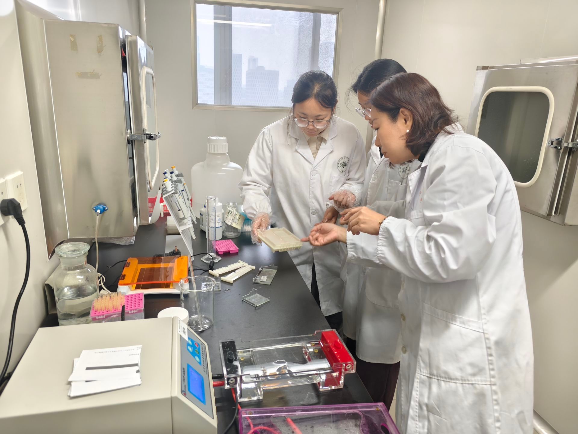 在实验操作环节,学生们在汤老师指导下,分组进行了从取样、加样、上机检测到数据分析的完整流程实践,并设置了阴阳性质控对照。同学们严谨操作,积极提问,现场学习氛围浓厚。汤老师穿梭于各实验台之间,耐心纠正操作细节,解答疑问,并分享了许多操作细节和异常结果分析的宝贵经验。