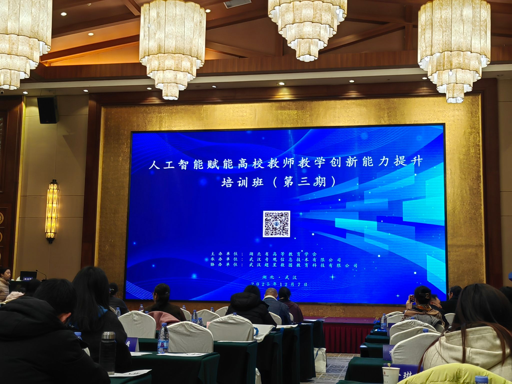 为深入贯彻教育数字化战略,积极响应《关于加快推进教育数字化的意见》要求,助力高校教师把握 AI 时代教学变革趋势,提升教学创新能力,湖北省高等教育学会于2025年12月7日举办了人工智能赋能高校教师教学创新能力提升培训班(第三期),学会会长周应佳到会致辞,我系骨干教师王敬参加了本期培训.本次培训聚焦 AI 与教学的深度融合,通过理论讲解、案例分享等多种形式,为参训教师带来一场兼具前瞻性与实用性的教学创新盛宴。