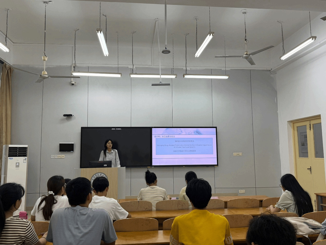 会议伊始,免疫学小组由王慧进行汇报,她围绕肺癌免疫标记物研究展开,系统梳理了文献研究脉络,更新了实验阶段性成果,并重点展示了团队在学术竞赛中取得的突破性进展。中草药小组组长汪海琼着重汇报创新创业竞赛成果,其团队项目荣获省级三等奖立项。公共健康小组由组长李岑崟系统阐述了其组内关于中学生心理健康研究取得的突破性进展,分子生物学小组由叶依婷同学介绍本学期学习到的文献整理方法,微生物小组组长汤孜翔最后汇报,该组本学期在实验技能提升方面成果显著。