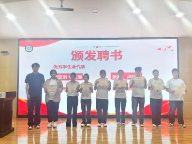 表彰结束后,会议宣读新一届各团组织主席及部长名单。学生会主席团由安沁欣、王浩、李文慧、邱思琪及学生副书记江铭组成,沈欣悦、陈东东任秘书处秘书长,李炳博、范逸伦、卢治臣任生活部部长等;青协由徐龙毓、田正东任会长,赵科、谭露等任副会长;心协由肖丽娜任会长,谭子恒、陈玟玟任副会长;白衣天使社团由王慧任社长,刘含蓓、程新凤任副社长。生物与制药工程学院团总支书记林珑老师为新一届各组织优秀代表颁发聘书,标志着学院团学工作开启新征程。