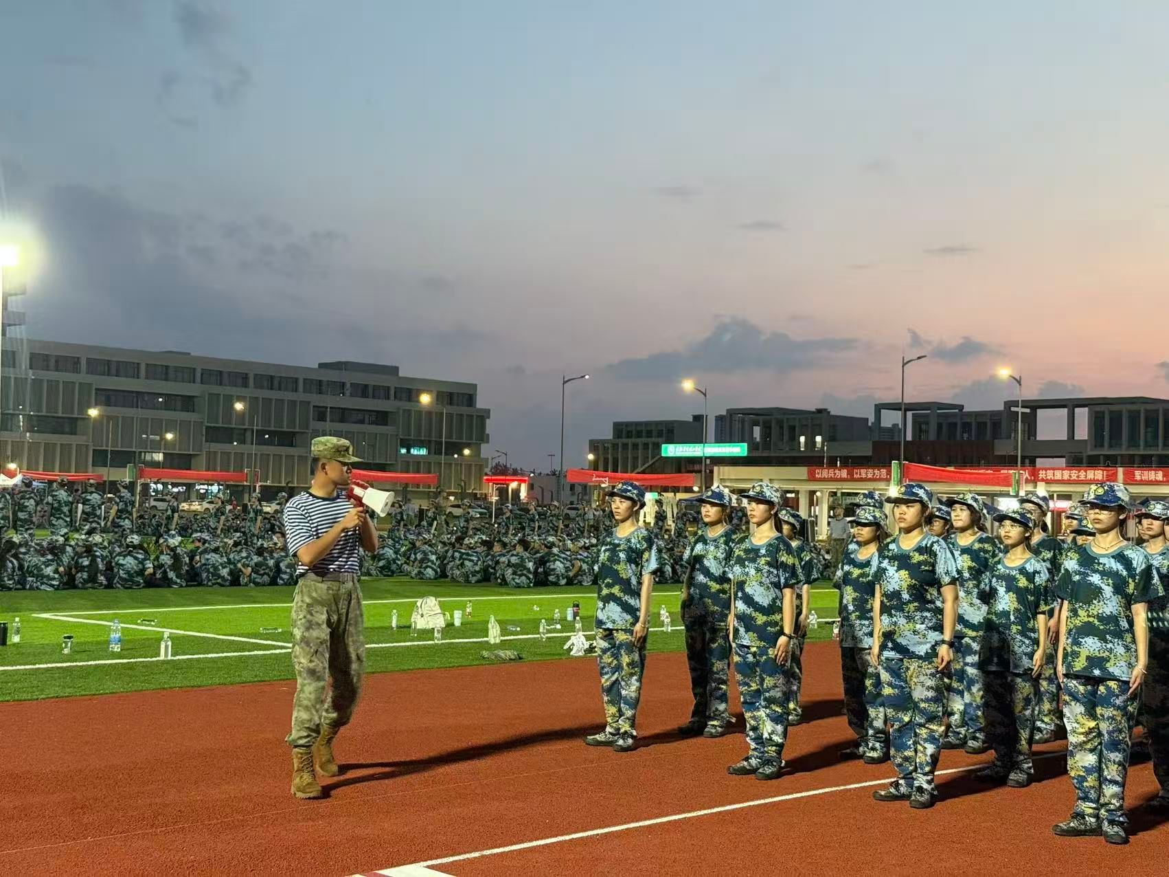迷彩交相辉映,展现出一道充满活力与激情的风景线。开营仪式在庄严的国歌声中启动。校领导在动员讲话中强调,军训是大学生涯的重要第一课,不仅是国防教育的重要实践,更是锤炼意志,培养吃苦精神,传承红色基因,将爱国情怀融入血脉重要途径。
