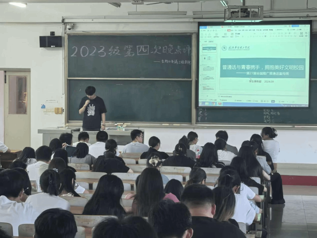 本次晚点评主题以习近平新时代中国特色社会主义思想为指导,深入贯彻落实党的二十大和二十届二中、三中全会精神,深入贯彻落实习近平总书记关于教育的重要论述和关于语言文字的重要指示批示精神,全面落实立德树人根本任务。我院辅导员以饱满的热情和专业的态度,向学生们阐述了普通话在日常生活、学习及未来工作中的重要性。他们通过生动的案例和深入浅出的讲解,让学生们深刻认识到普通话作为国家通用语言的独特魅力和广泛影响力。