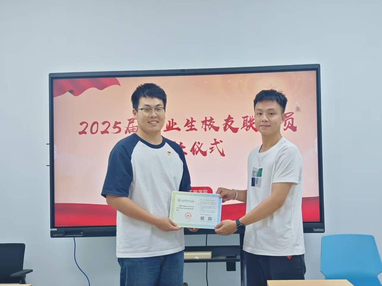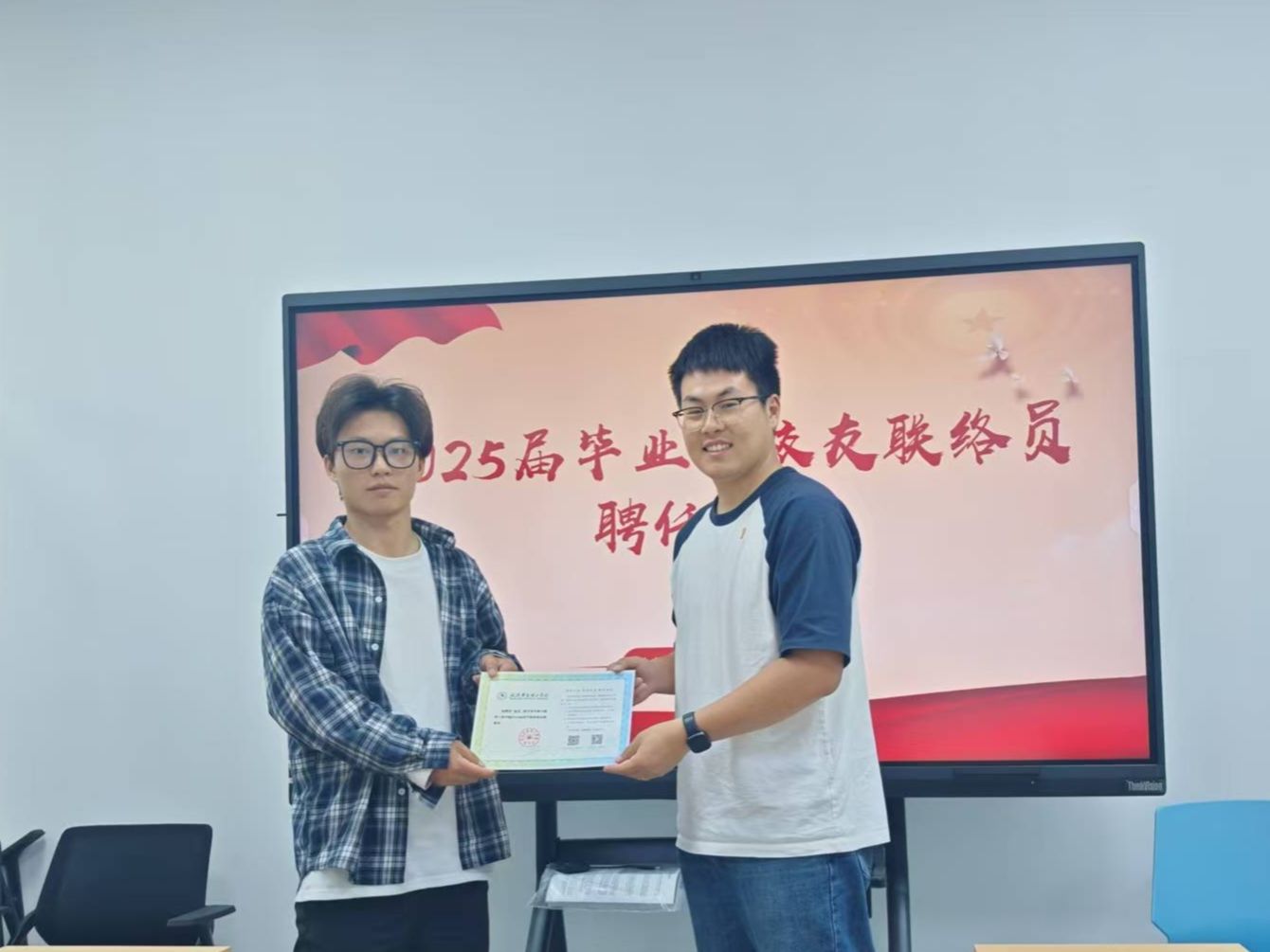 2025年5月15日,生物与制药工程学院在综合楼大学生事务中心三号会议室顺利举行了校友联络员的聘任仪式。旨在进一步巩固学院与校友之间的沟通与合作,促进校友资源的有效整合与发展。出席仪式的有学院毕业班辅导员李博祎老师,以及新任命的2025届校友联络员代表。