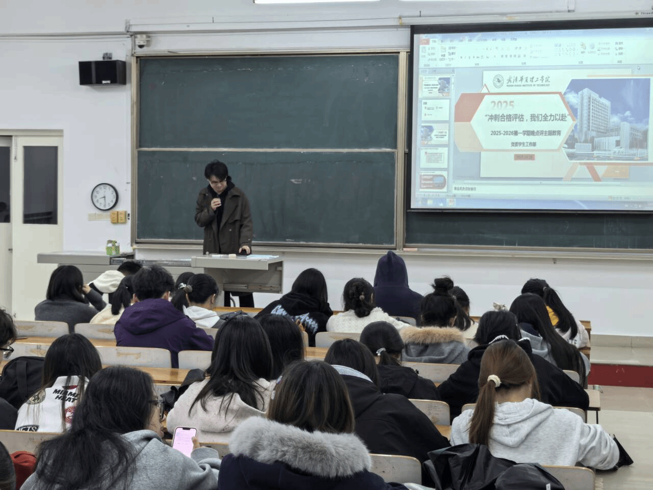 近期,我院积极响应学校迎评工作要求,通过晚点评集中教育,加强学生日常管理及学风建设,旨在全方位规范学生行为,提升教学管理质量,进一步营造和谐、有序安全的校园环境,为顺利通过本科教学合格评估做好准备。