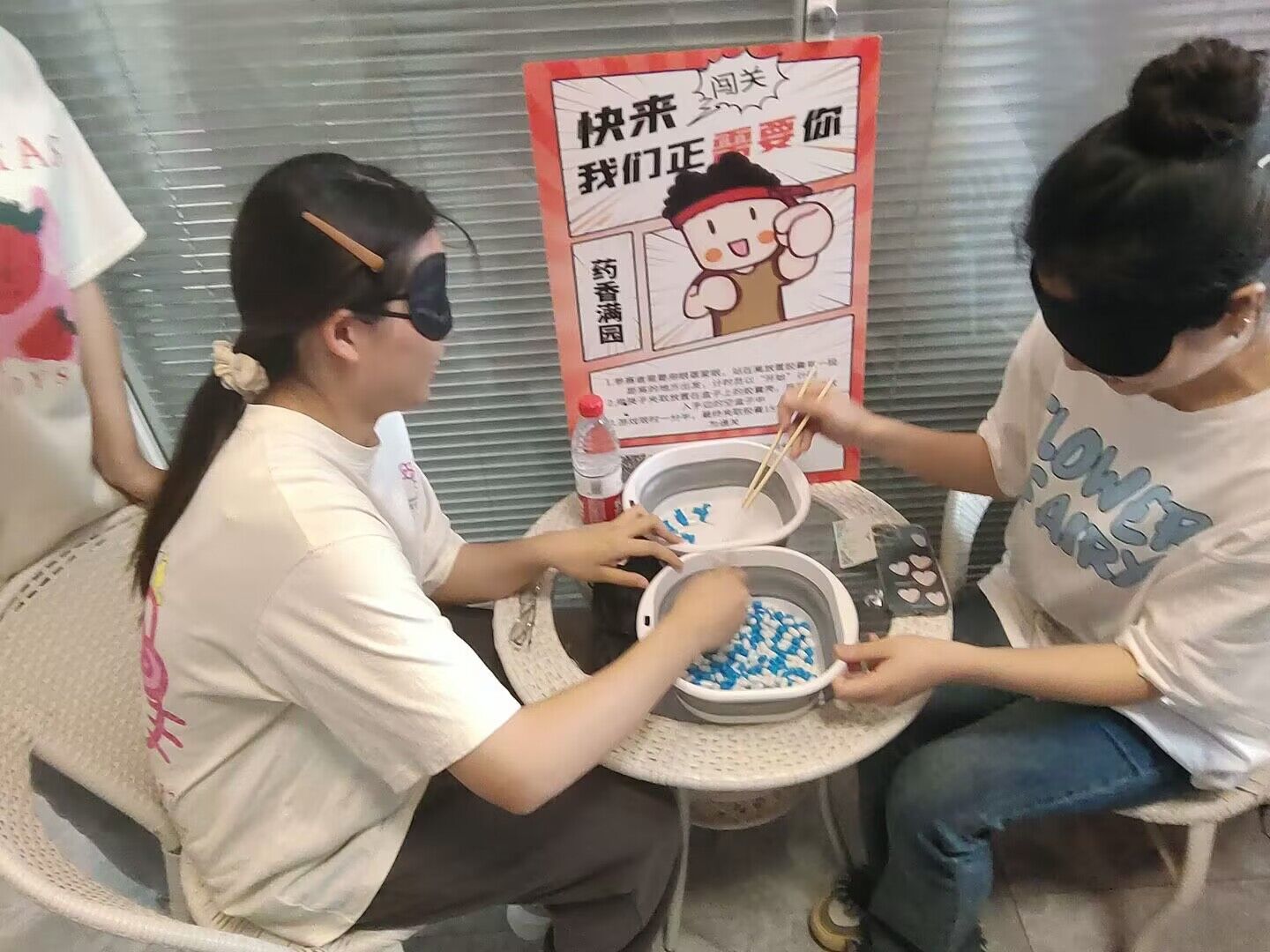 活动伊始,同学们领取一张心协集章卡片,随后在五项游戏关卡处进行闯关,可依据个人喜好,随机参与一项趣味小游戏,游戏规则张贴于各个关卡处,参与者需仔细阅读闯关规则,闯关成功即可获得印章,闯关项目分别是“虎口夺药”“对症投药”“药香满园”“药泥丸”“药你笑”。完成全部项目后,即可兑换一份礼品。虎口夺药要求两人一组,相对而立,两玩家需按照裁判口令去做动作,在听到“艾草”后两人抢夺艾草包,最终获得艾草包者获胜。杨海龙老师跃跃欲试,他成为“擂主”与不同的同学比拼反应力,游戏氛围很融洽。随后,刘轶老师也现身于本次活动中,将氛围又推向另一个高潮,她不仅参与了各项活动,而且鼓舞更多的同学去了解中医药知识。至此,参与活动的同学都满载而归,最后活动圆满结束。