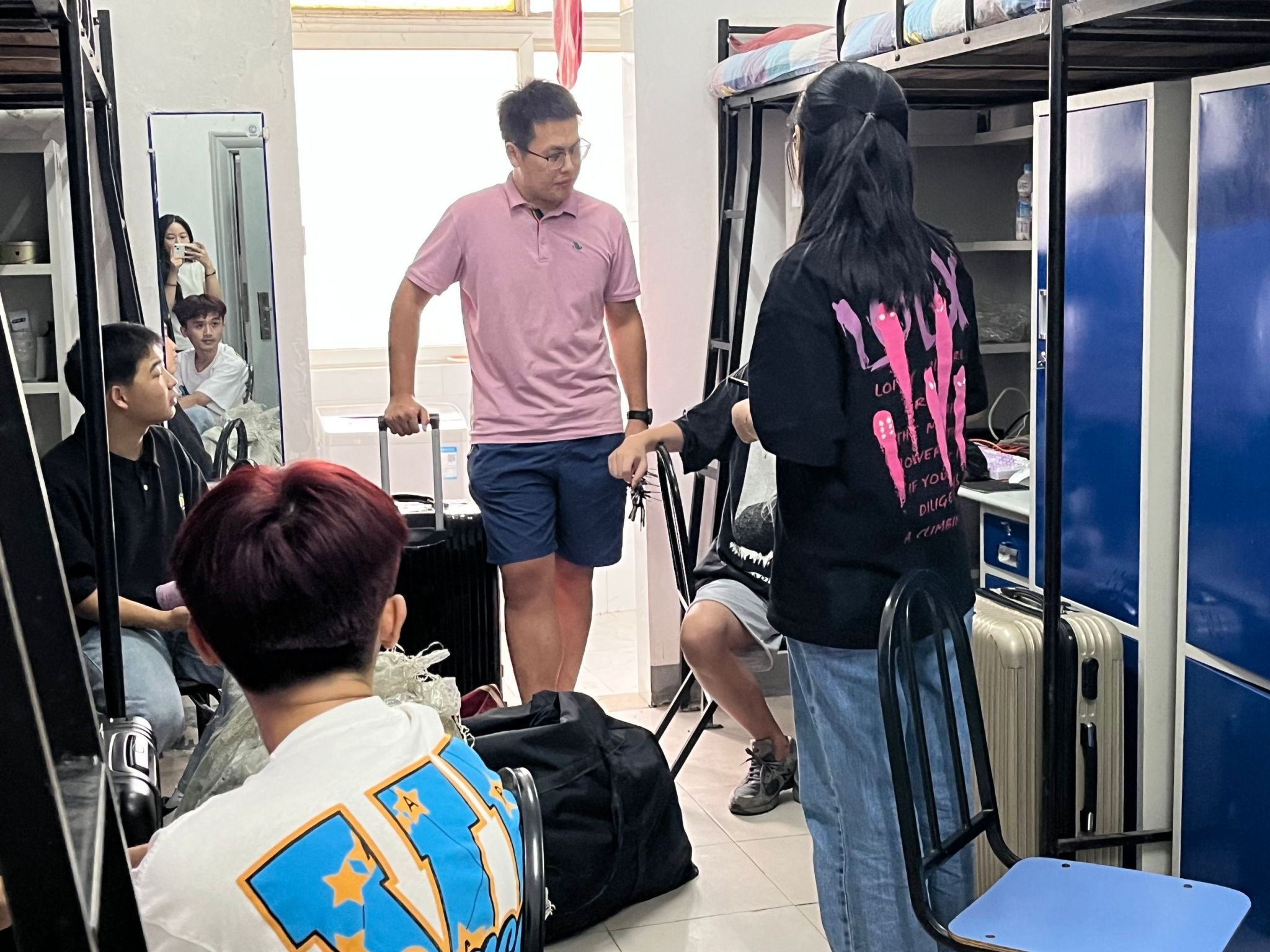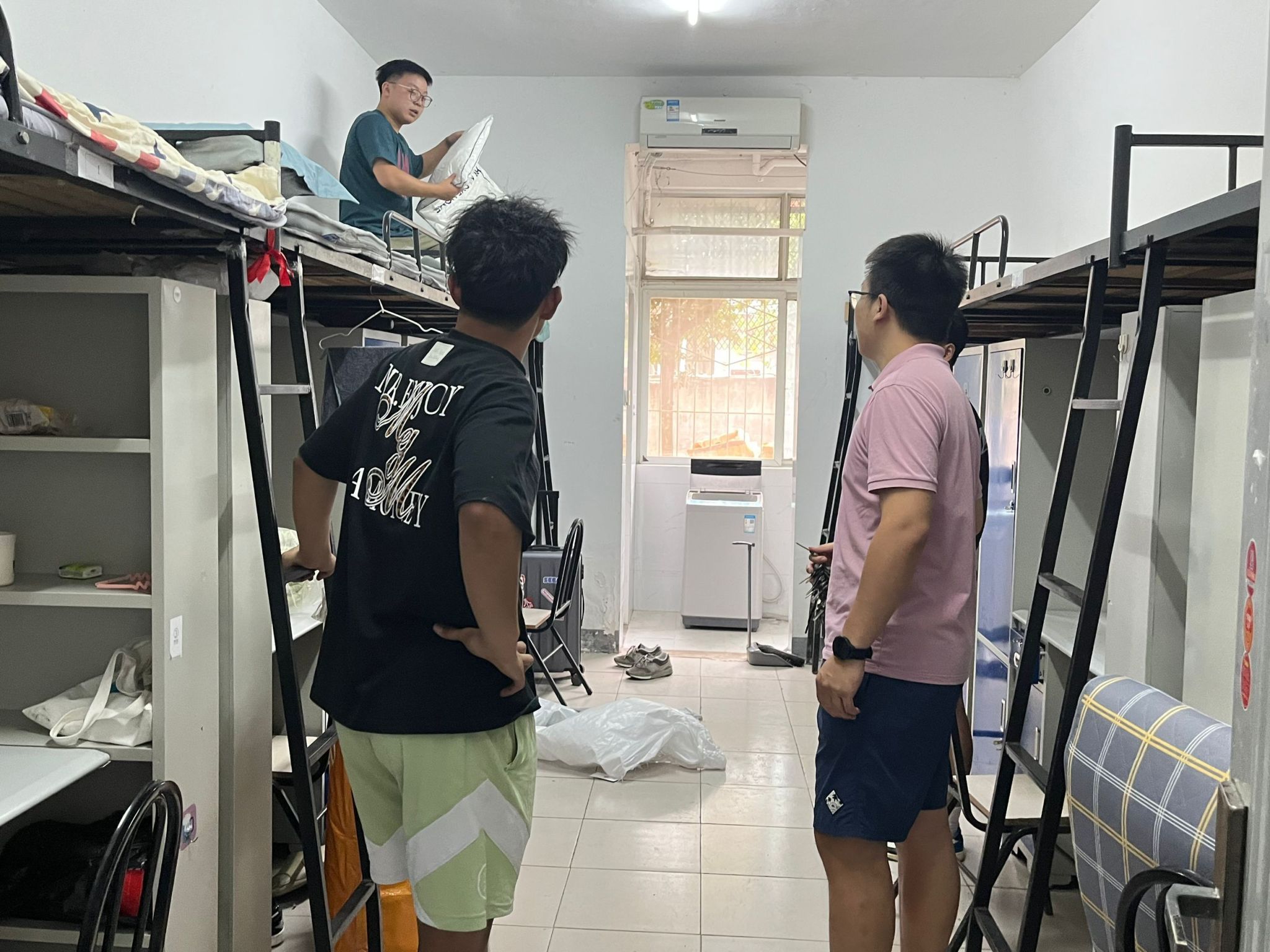在新生宿舍,李博祎亲切询问大家来自哪里,是否习惯新环境,对学校食宿是否适应、满意,还有什么建议。认真察看学生宿舍内空调、照明、床位、卫生间等是否能正常使用,对于个别宿舍存在的问题,现场解决。并且询问了关于校园网电费充值等问题,让同学们熟悉了宿舍问题报修流程,切实解决同学们的实际问题。李书记叮嘱同学们注意安全、团结互助、好好学习、遵守纪律,做优秀文明学生,鼓励大家尽快适应新环境、新生活,在学校开启人生新征程。