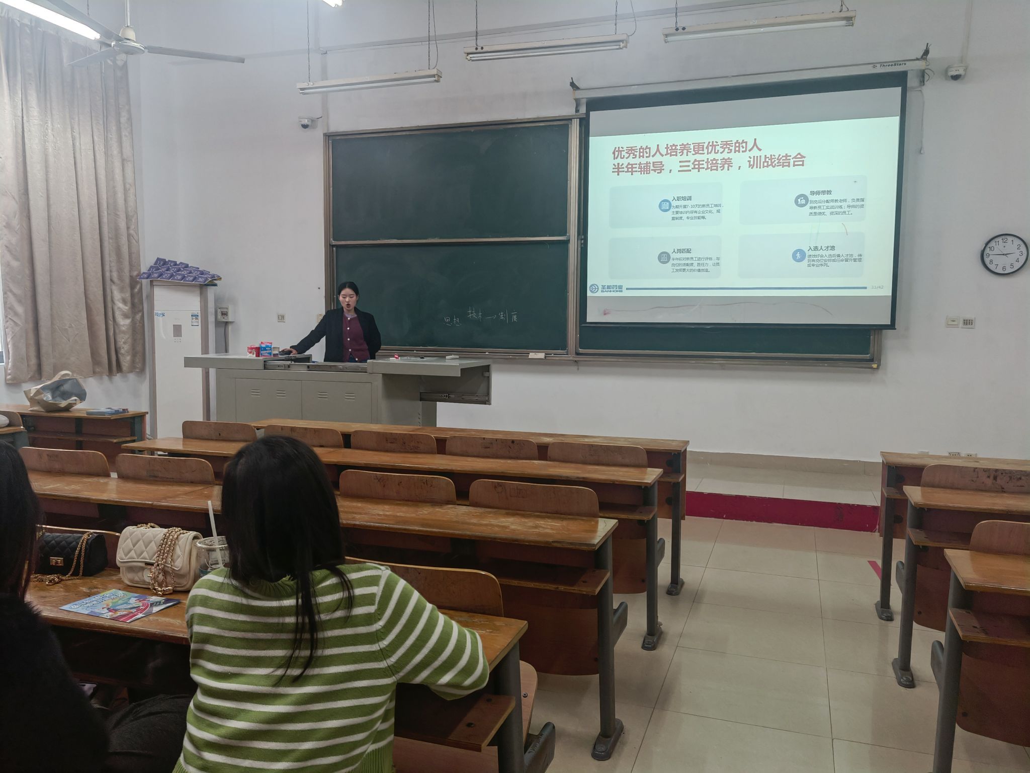 3月20日下午14:30,我院在1-106举办了一校园招聘宣讲会。本次宣讲会由来自南京圣和药业股份有限公司人力资源部门经理张环环主要宣讲,学院党总支组织员张明、毕业班辅导员杨海龙及部分2024届毕业生参会。张经理分别从公司概况 、岗位需求和发展机会进行了介绍。
