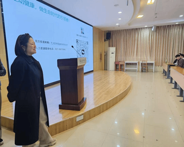 2025年4月1日,武汉华大基因医学检验所的招聘团队来到beat365,为医学检验技术专业1221-4和生物制药1221-2、3221-3班级学生宣讲华大基因2025年的招聘计划。