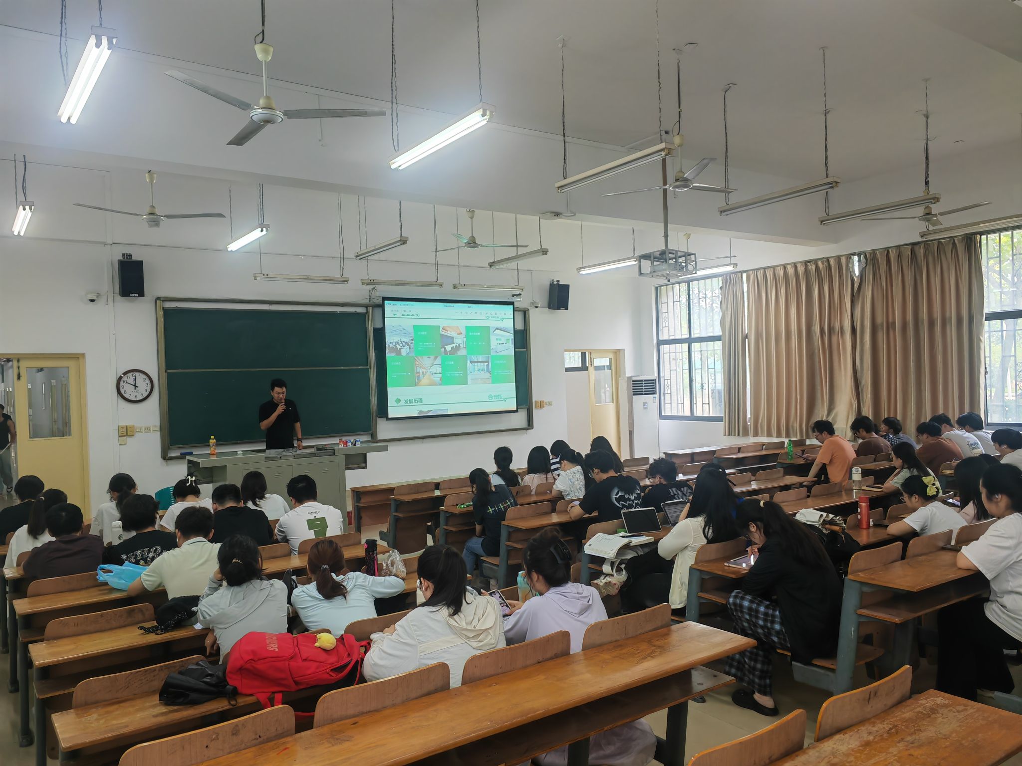 张经理首先向师生们展示了企业的发展历程、核心业务、创新成果以及充满活力的办公环境。企业在生物工艺耗材、生物试剂等领域的突出成就,瞬间点燃了同学们对科技行业的热情。
