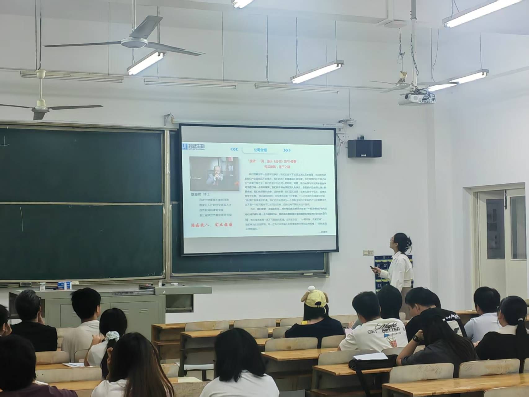 在招聘环节,招聘负责人重点介绍了此次面向学院学生开放的岗位,包括研发类、生产类、质量控制类等多个方向,并详细说明了岗位要求、薪资待遇、职业发展路径等同学们关心的问题。我武生物为员工提供了广阔的发展空间和完善的培训体系,鼓励员工不断学习和成长,在实现个人价值的同时,也为公司的发展贡献力量。