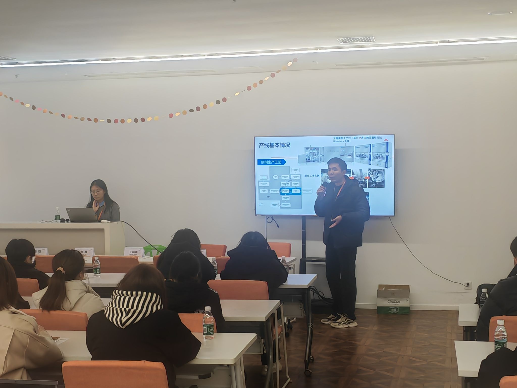 紧接着,原液生产部、制剂生产部负责人依次开展宣讲:原液生产部聚焦细胞培养与蛋白纯化技术,解析了生物药生产核心环节的技术逻辑;制剂生产部则围绕制剂工艺与质量管控,分享了产业化落地的实践经验。两场专业宣讲让学生们直观了解岗位职能与行业技术趋势。