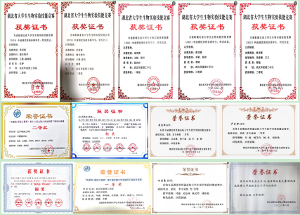近几年,学生在全国大学生制药工程设计大赛、湖北省大学生化学实验技能竞赛、湖北省大学生生物实验技能竞赛、湖北省微生物培养皿设计大赛、湖北省“挑战杯”大学生创新创业竞赛、湖北省大学生化学化工创新成果报告会等各类赛事中荣获一、二、三等奖60余项。