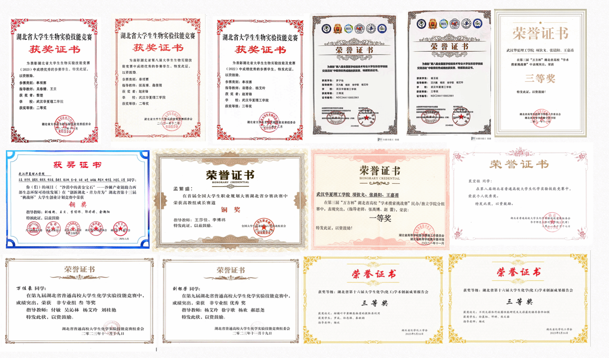 近五年,学生在湖北省“挑战杯”大学生创业计划竞赛、湖北省大学生化学实验技能竞赛、湖北省大学生生物实验技能竞赛、湖北省大学生微生物培养皿艺术设计大赛、全国医学检验技术专业大学生形态学技能交流活动等各类赛事中获奖47人次;获批国家级大学生创新创业训练计划项目和重点支持领域项目1项;公开发表科研论文2篇。