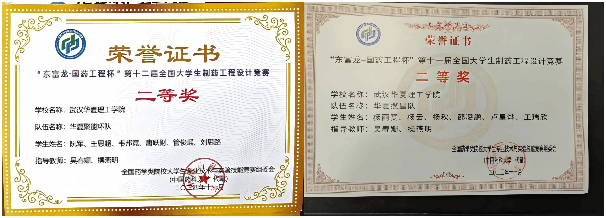 近几年,制药工程专业学生在全国制药工程设计竞赛、湖北省大学生化学实验技能大赛等各类竞赛中获全国一等奖2项、二、三等奖3项,湖北省一等奖1项。