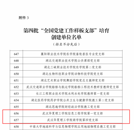 近日,从教育部网站获悉,院教工第四党支部入选第四批“全国党建工作样板支部”培育创建单位。湖北省同类高校仅3个支部获批。