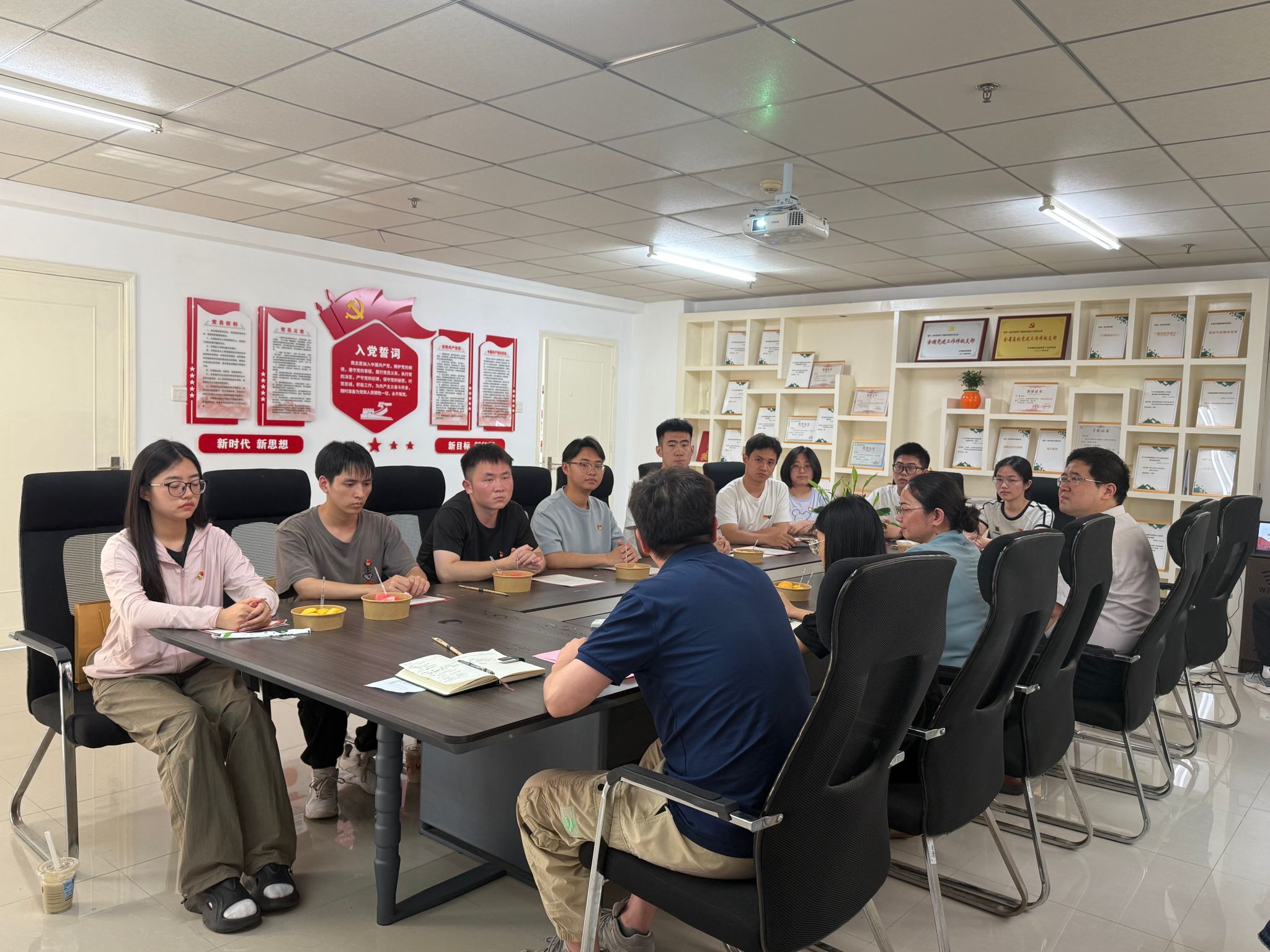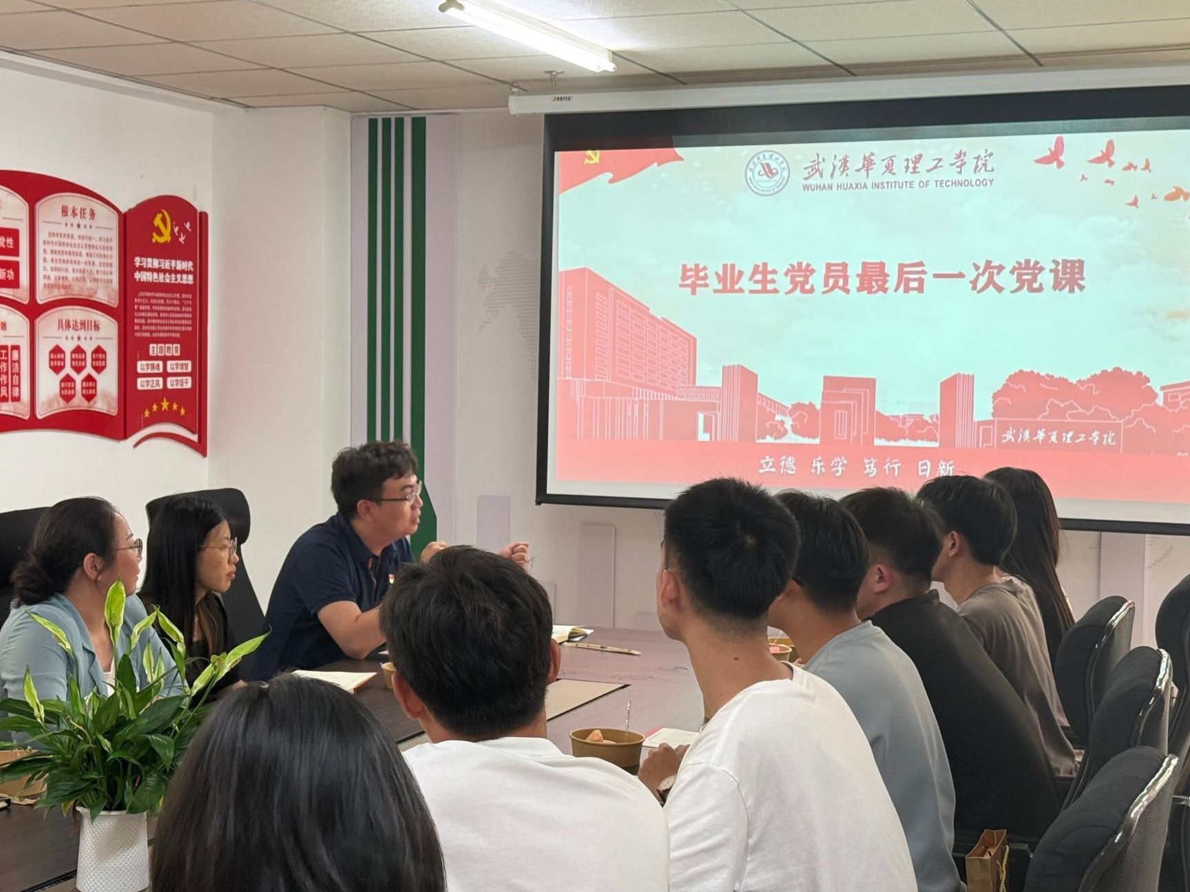6月17日上午,商学院2025届毕业生党员“最后一次党课”主题活动在综合楼819会议室隆重举行。本次活动以"弘扬三大精神、锤炼过硬作风、激励担当作为"为主题,通过专题党课、誓词重温、师长寄语等环节,为毕业生党员筑牢信仰之基。商学院党总支副书记孙文胜,副院长刘佳,学工办主任刘浩波,国贸金融系副主任程晓芳,教务处代表刘莹及优秀毕业生党员代表共同参与。
