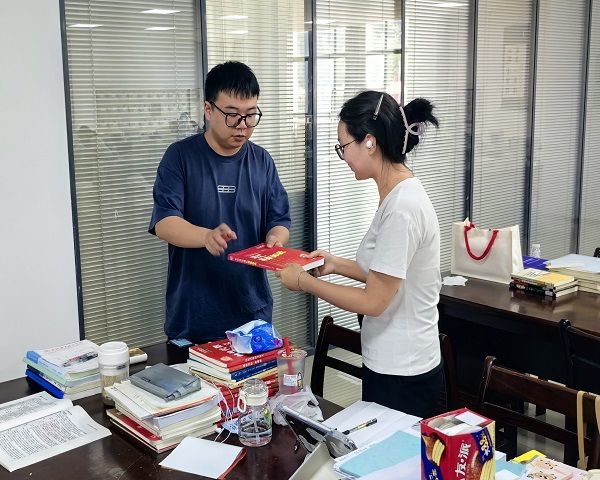 在商学院考研自习室,各班辅导员将一份份满载心意的资料递到考研学子手中,收到资料的同学纷纷表示,这份“及时雨”般的帮助让他们倍感温暖和鼓舞。刘同学(商学院大三学生)说:“在备考阶段收到这么实用的资料,感觉特别暖心,也更有动力了。感谢学校和学院的贴心安排!”