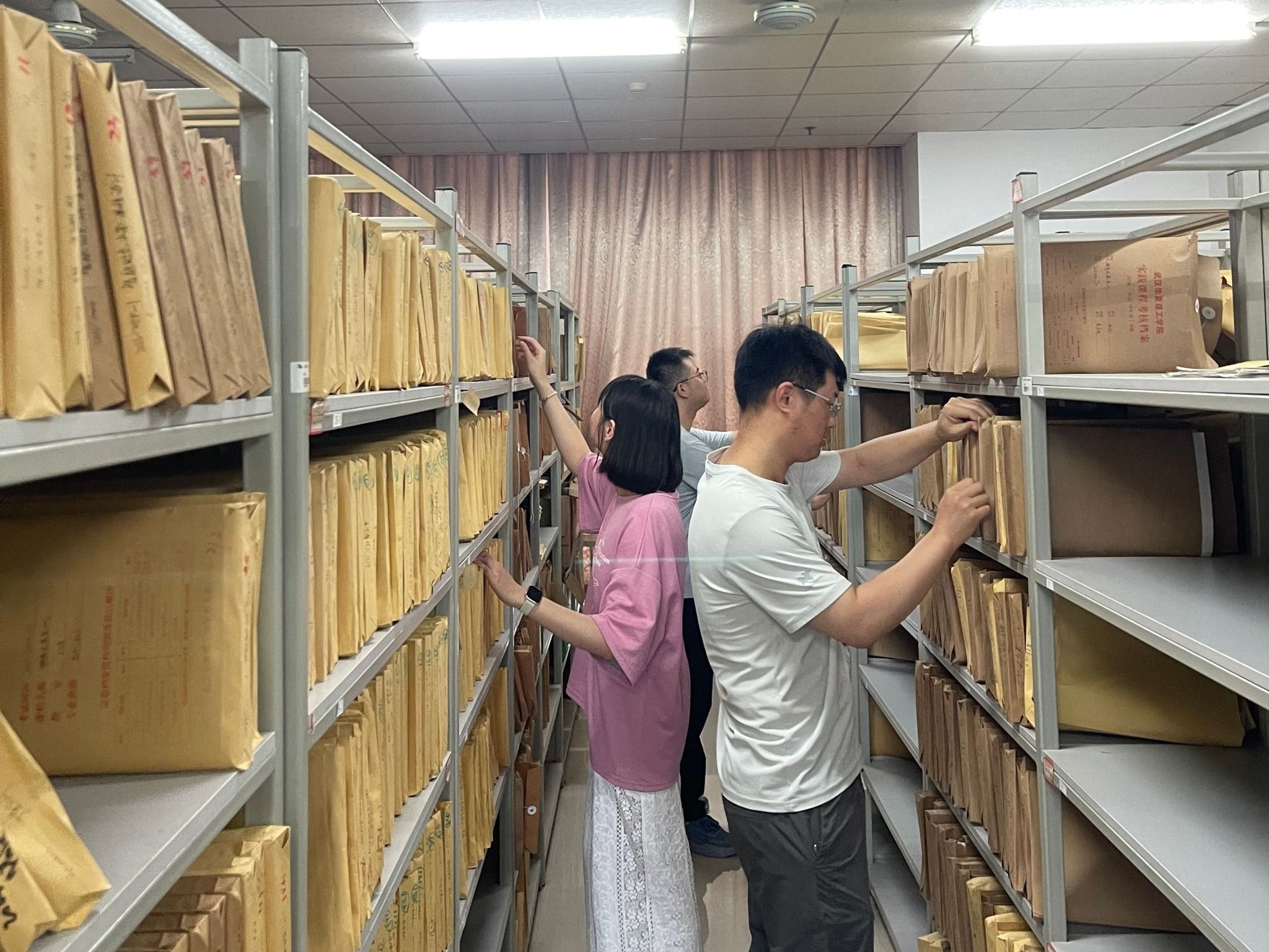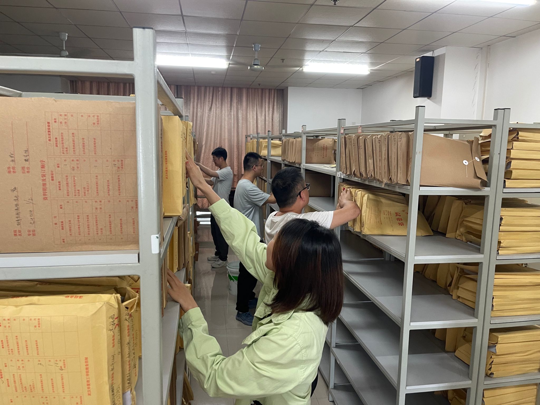 近日,为迎接教育部本科教学工作合格评估,商学院实验中心档案室内一派热火朝天。室外38℃,没有空调的档案室直逼45℃,但实验中心全体人员不畏高温,在档案室逐一核对商学院近3学年实践教学相关资料。为了确保资料的完整性和准确性,老师们不仅需要对现有文件进行分类归档,还要仔细核对每一项数据,确保其真实可靠。