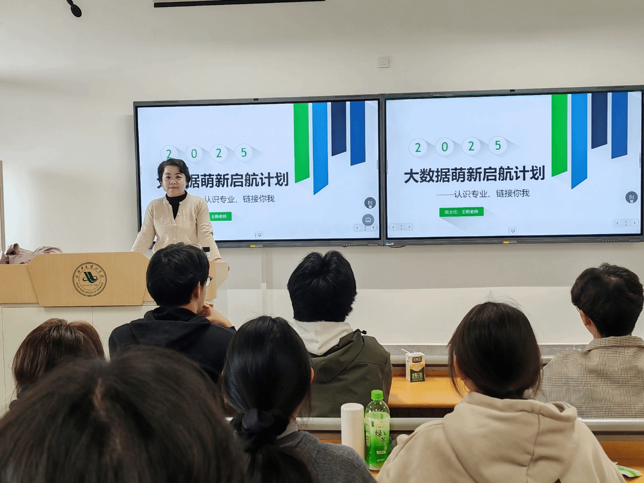 班会上,王老师着重引导同学们树立清晰的大学目标。她指出,大学四年是知识、能力与视野全面飞跃的黄金时期,鼓励大家将长远职业规划分解为每个学年的具体任务,例如:夯实微积分与编程基础、争取外语能力证书、参与学术竞赛等。为此,王老师还为大家梳理了学校的“宝藏”资源,如图书馆的权威数据库、学科竞赛指导中心、国际交流处的语言工作坊以及校企合作实践基地等,并现场展示了专业的人才培养方案,逐一点出核心课程与先修关系,提醒大家关注学术动态,尽早融入科研项目团队。她强调,清晰的蓝图和主动利用资源的意识,是决胜未来、成为国际化数据人才的关键。