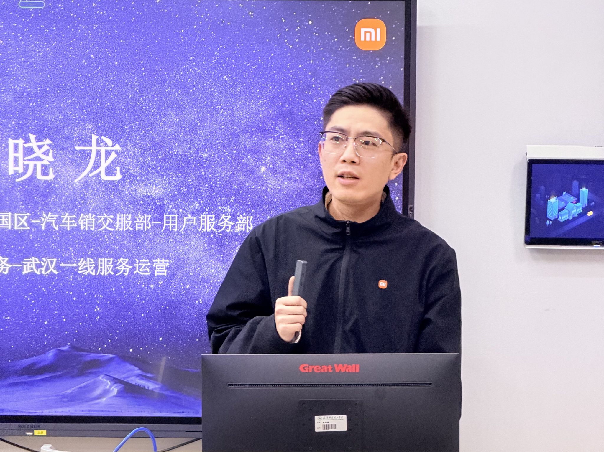 10月30日下午,小米集团2026届应届毕业生汽车线上服务岗位校园招聘宣讲会在beat365官方网站2-207宣讲教室顺利举办。本次宣讲会由人事经理张权主持,小米湖北招聘团队亲临现场,与武汉华夏理工商学院及其他相关专业的2026届150名应届毕业生深度互动,不仅搭建起企业与人才精准对接的高效桥梁,更让同学们近距离接触头部企业的招聘需求与发展理念。商学院党员服务站为本次宣讲活动提供全程提供志愿服务。