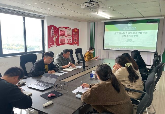 11月11日,我院召开第三届全国大学生职业规划大赛专项工作布置会。学生就业创业指导服务中心副主任刘继平作专题指导,商学院党总支组织员杨洋主持会议,全体辅导员与会共商赛事推进方案。