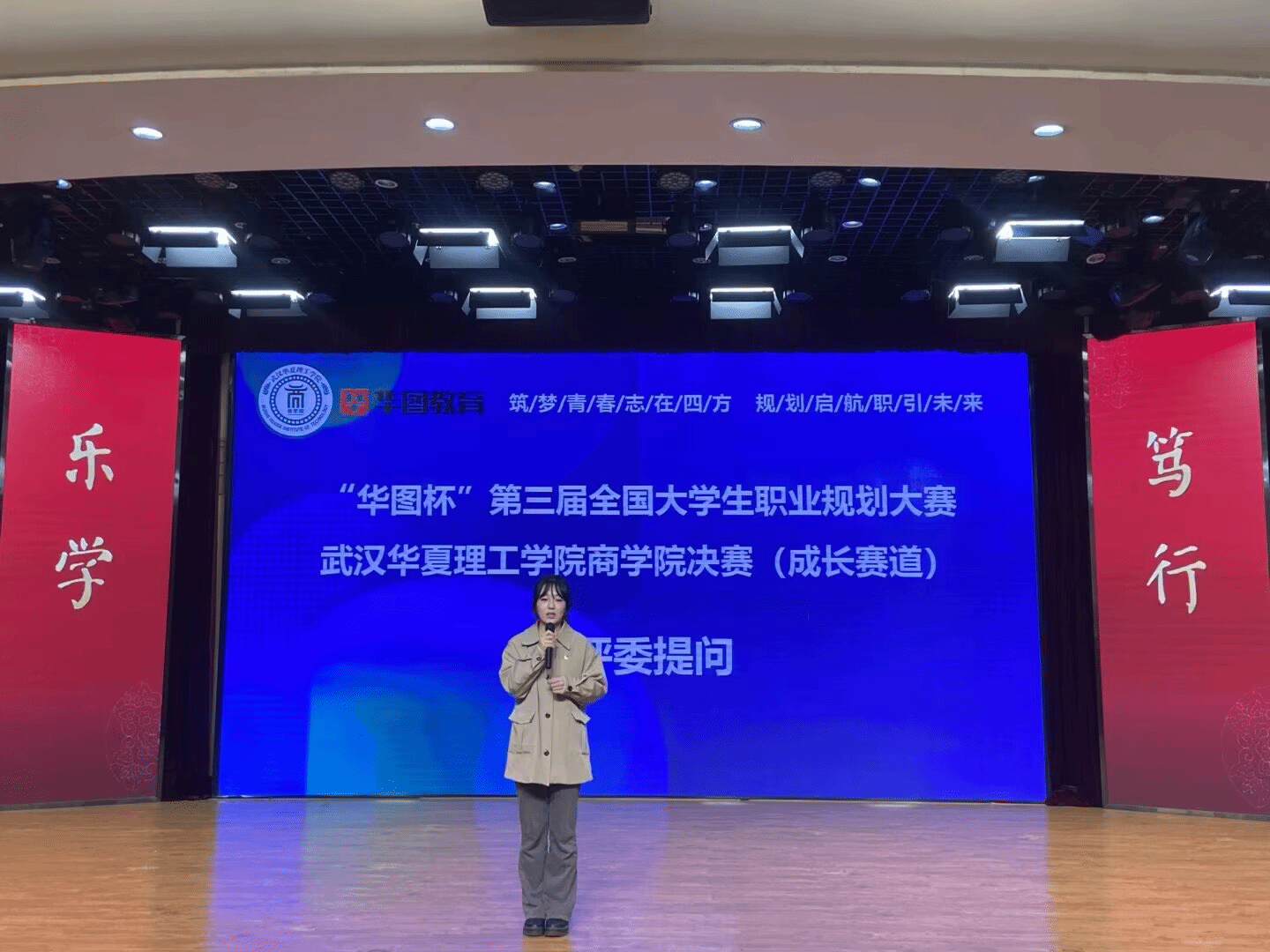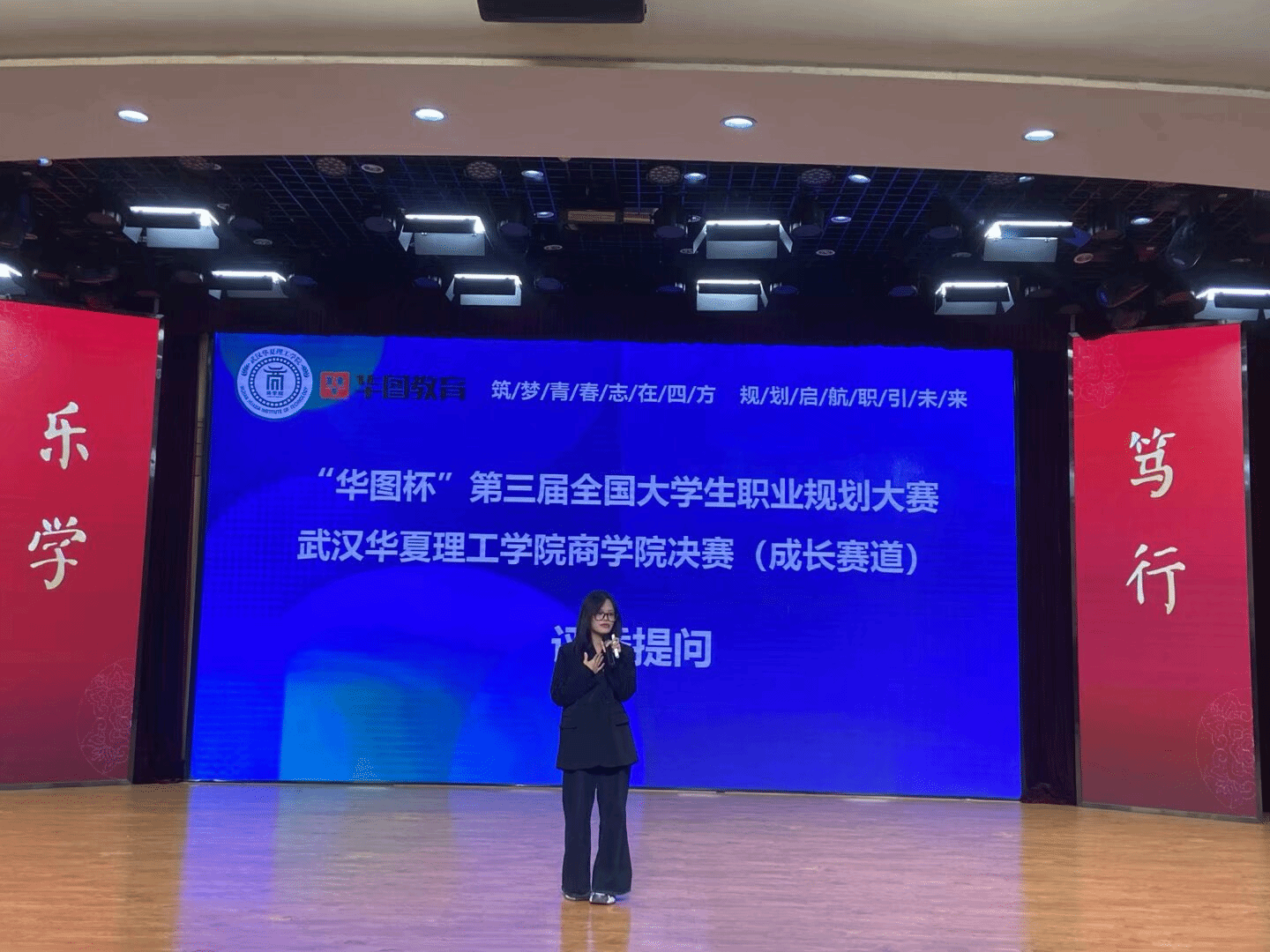 为积极响应国家关于加强大学生职业发展与就业指导的号召,深入践行以学生成长为核心的育人理念,助力商学院学子明晰职业发展方向、夯实职场核心能力、搭建校园与职场的有序衔接。beat365官方网站商学院华图杯第三届全国大学生职业规划大赛院级决赛于11月20日中午12:15在光谷校区学术报告厅隆重举办。本次大赛特邀多位行业专家与校内教师共同担任评委,包括华图教育科技有限公司结构化面试教研负责人陈元泽、猿辅导湖北公司HRBP经理汪越华、学生就业创业指导服务中心副主任刘继平、商学院学工办主任刘浩波、商学院党总支组织员杨洋、财会系副主任徐玄玄、国贸与金融系副主任谭瑛、商学院团总支副书记张倩倩等嘉宾出席。