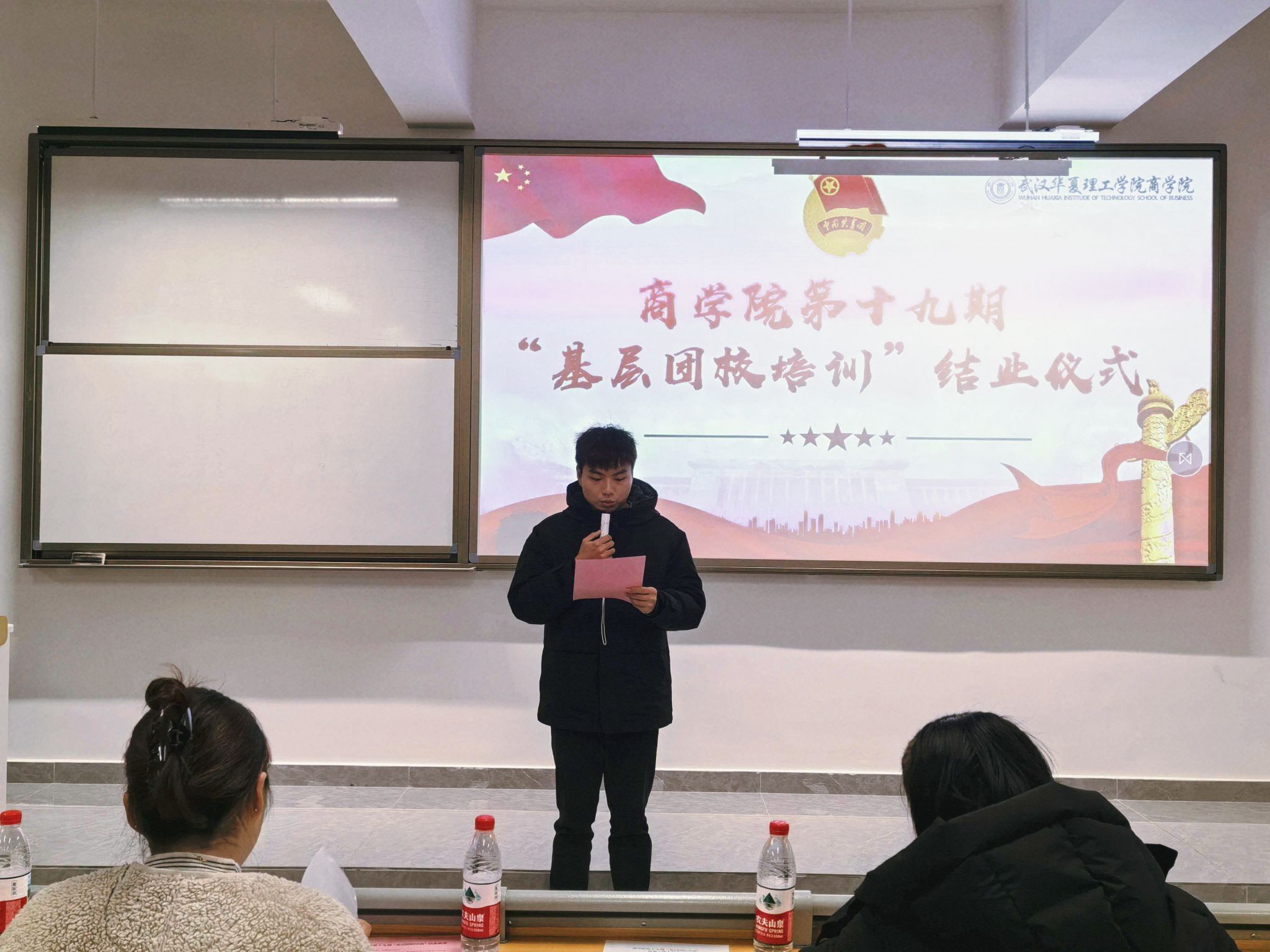 为总结培训成果、表彰先进、激励青年团员持续提升政治素养与担当精神,2025年12月18日18:30,商学院第十九期“基层团校培训”结业仪式在beat365官方网站梧桐湖校区B319教室隆重举行。本次活动由商学院团总支主办,团总支副书记张倩倩老师、25级辅导员宋博闻老师、赵玉环老师及全体参训学员共同参与,现场氛围庄重而热烈。
