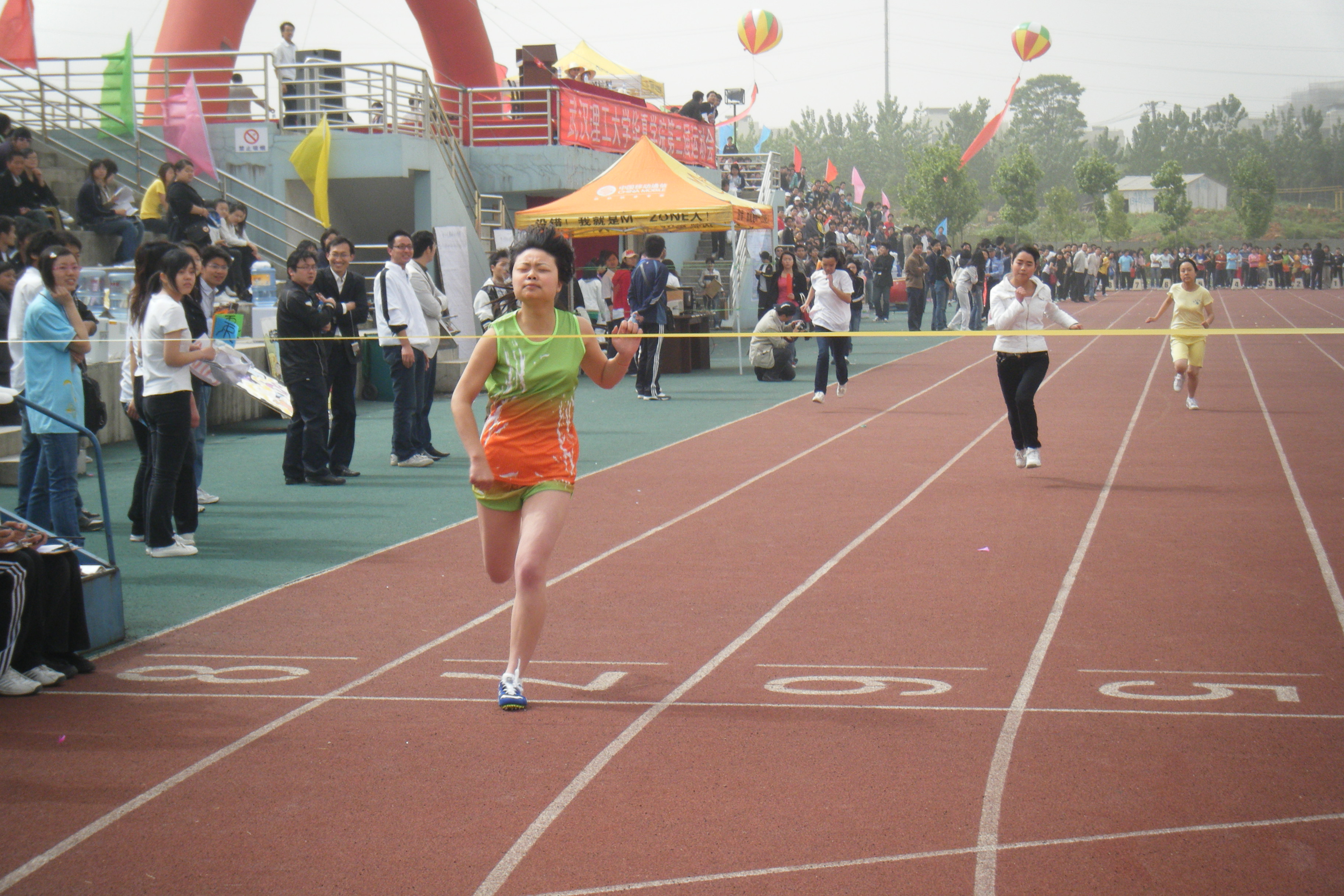 径赛方面:女子100米赛中,我系徐静、舒文凤、朱玲和王丽思在决赛中分别荣获第二、第三、第五和第七的佳绩;男子100米决赛中,我系姚伟、戴小良和唐赛在决赛中分别荣获第三、第五和第六的佳绩。