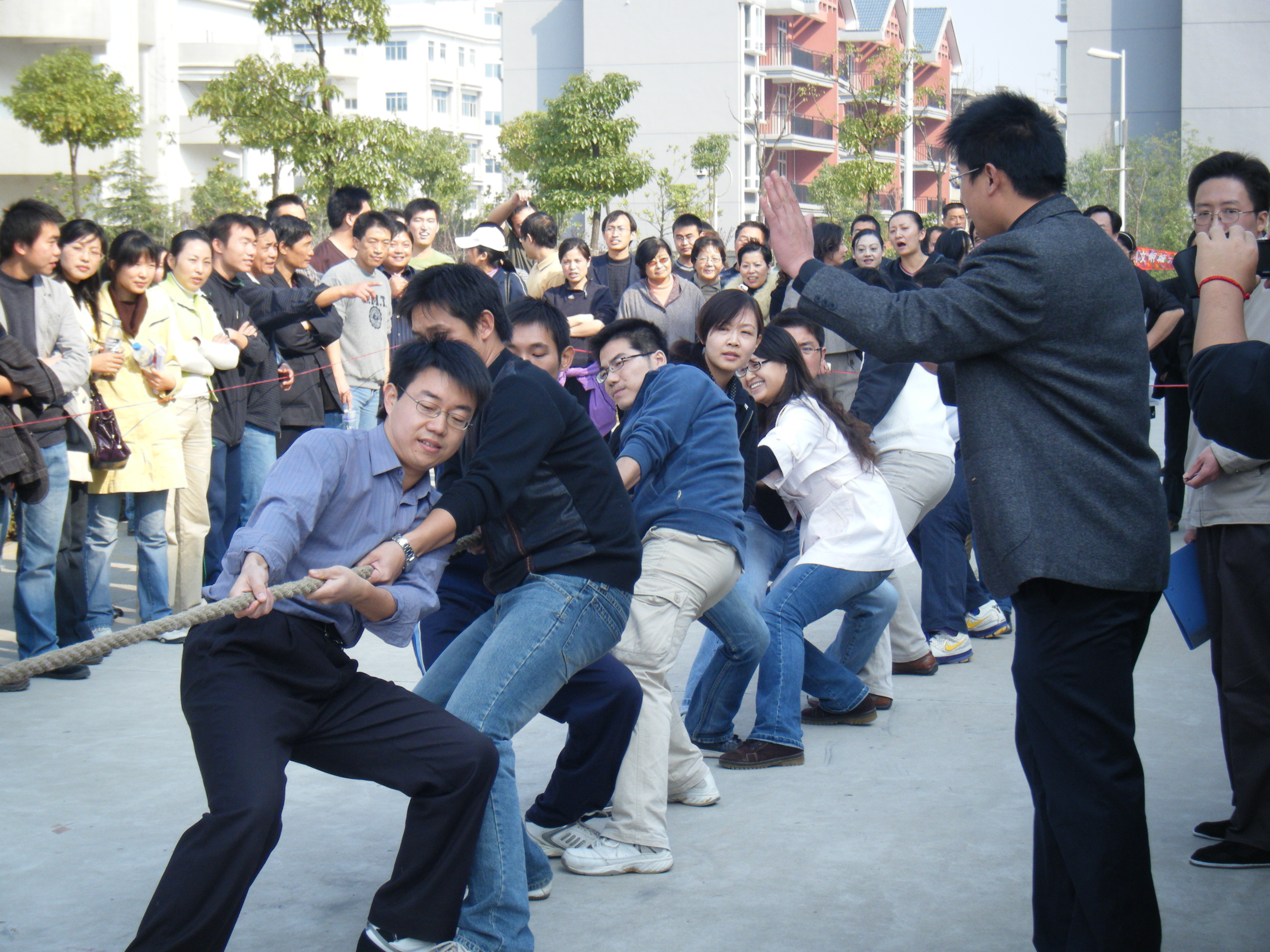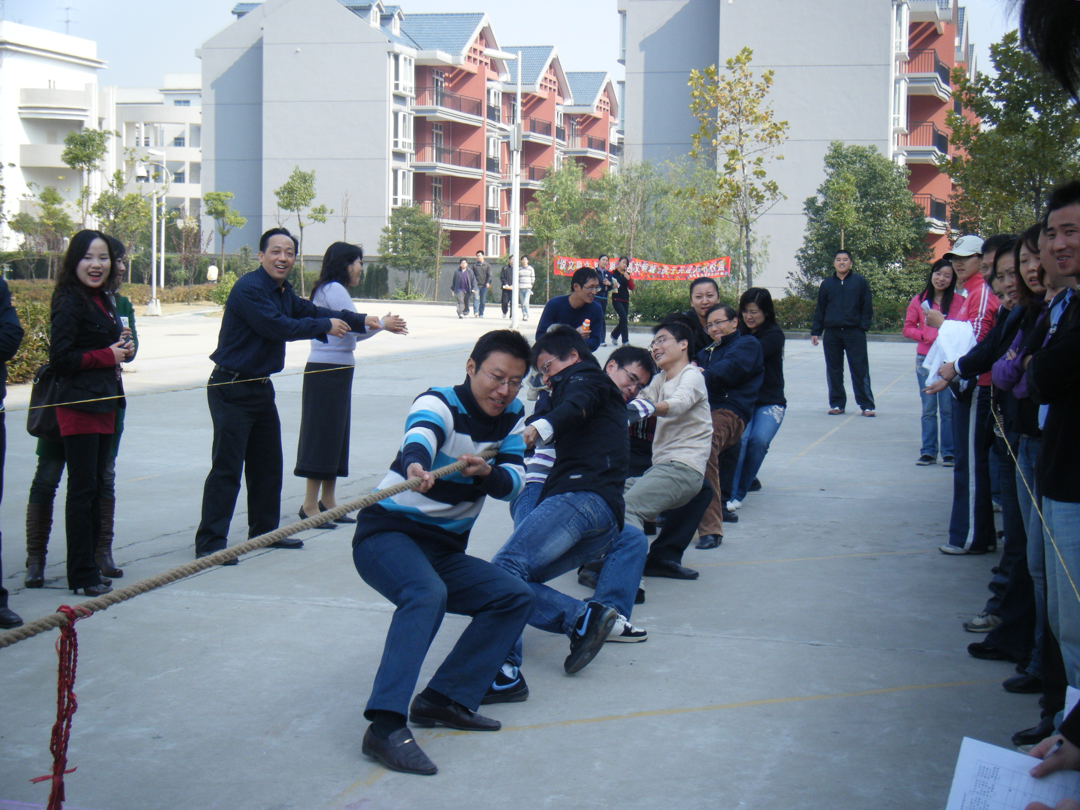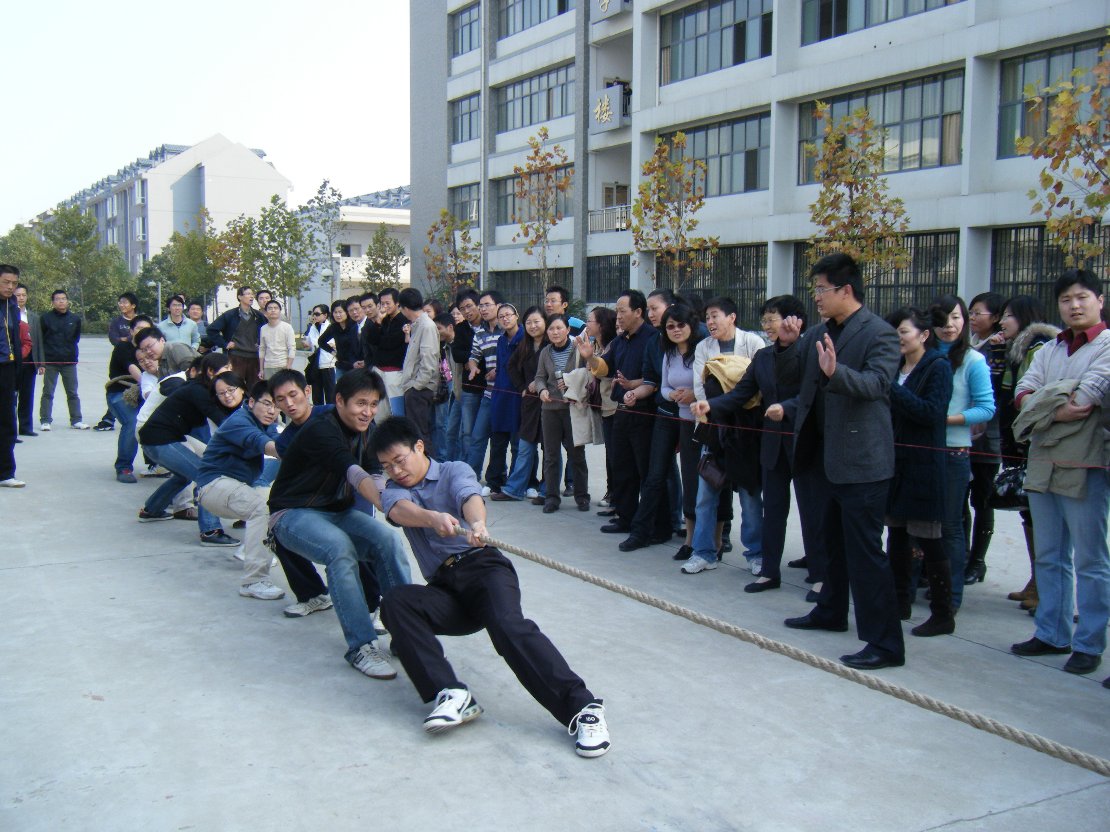 11月14日下午,经济与管理系派出教师和学工两支队伍参加学院工会举行的拔河比赛。