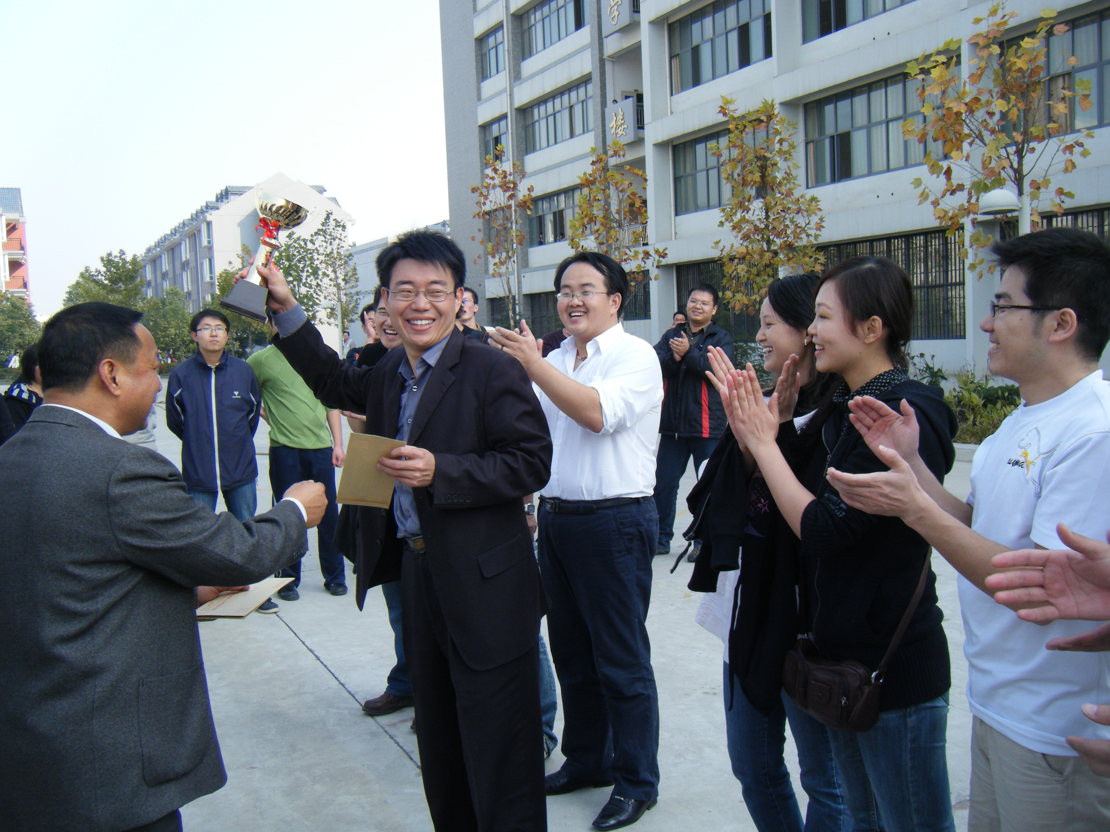 系主任程艳霞,党总支书记彭淑珍,系副主任汪有涛,学工办主任韩玉进到场助威。经过大家的奋力拼搏,最后教师队伍获得第二名,学工队伍获得第三名的好成绩。〈◆经管系 杨俊〉