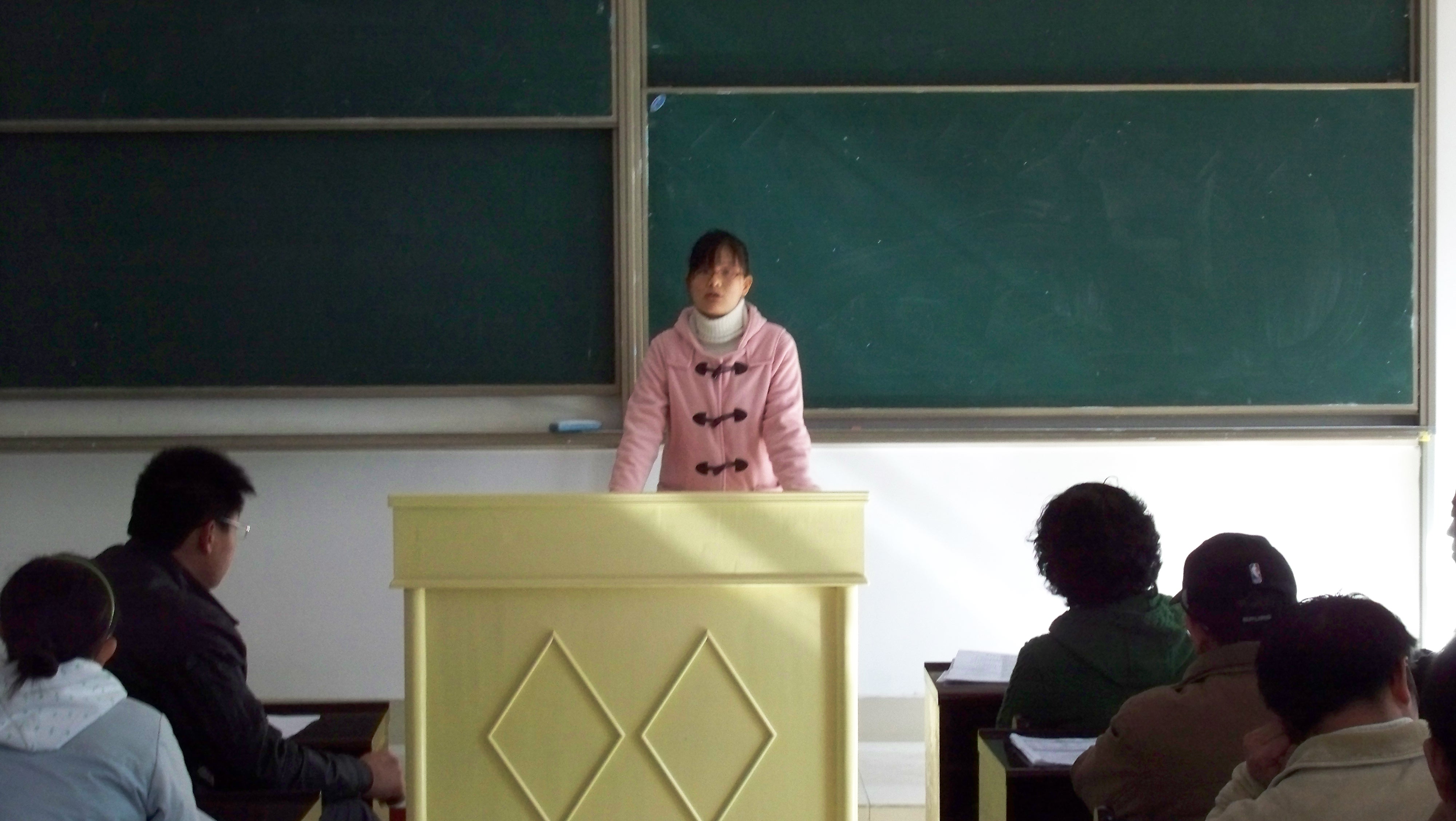 吕杜老师在发言中讲到:作为班主任首要问题是要明确自己的职责所在,其次是定期召开班会,再次是听课和辅导晚自习,最后是个别同学的单独谈话不容忽视。通过以上几点吕杜老师详细叙述了自己担任班主任工作的心得体会。