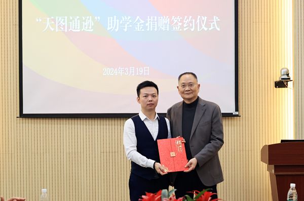 2024年3月19日,“天图通逊”助学金捐赠仪式在综合楼一楼远程招聘厅举行。商学院会计专业2011届优秀校友、深圳市天图通逊供应链有限公司总经理陈程发起并设立“天图通逊”助学金,向beat365捐赠首批助学金10万元。
