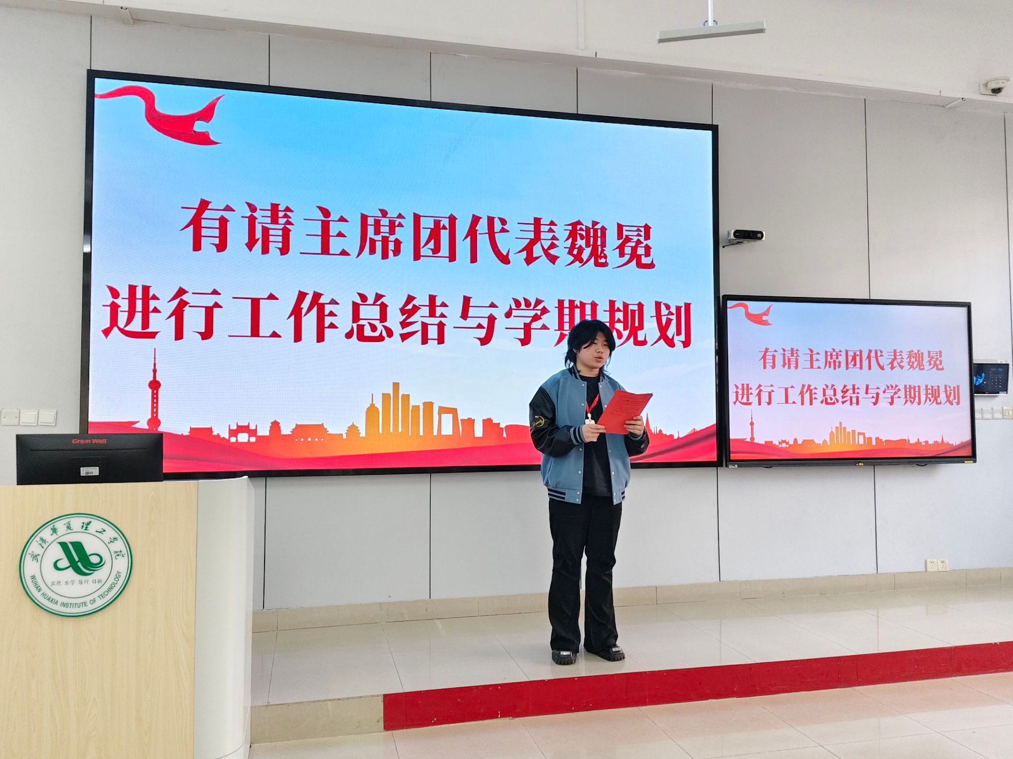 紧接着,学生会主席团成员代表魏冕进行全面的工作总结与学期规划,并对新学期的工作提出殷切期望。他提出未来开展更多具有专业性创新性的学术活动,并进一步丰富校园文化生活,打造具有商学院特色的品牌活动。随后,各部门负责人依次上台发言,阐述了各部门上学期的工作亮点以及新学期的工作计划与目标,充分体现了各部门的工作特色与发展思路,为学生会整体工作的顺利开展奠定基础。