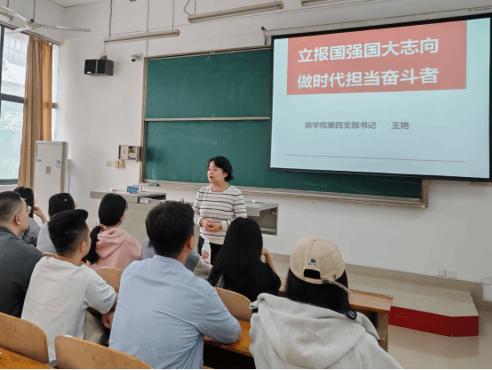 为深入学习贯彻党的二十大精神,培养学生党员的爱国情怀与担当意识,4月7日下午,商学院第四党支部在3教305教室开展了一场意义深刻的主题党课。本次党课由商学院第四党支部书记王艳老师主讲,学院34名学生党员、入党积极分子参与学习。