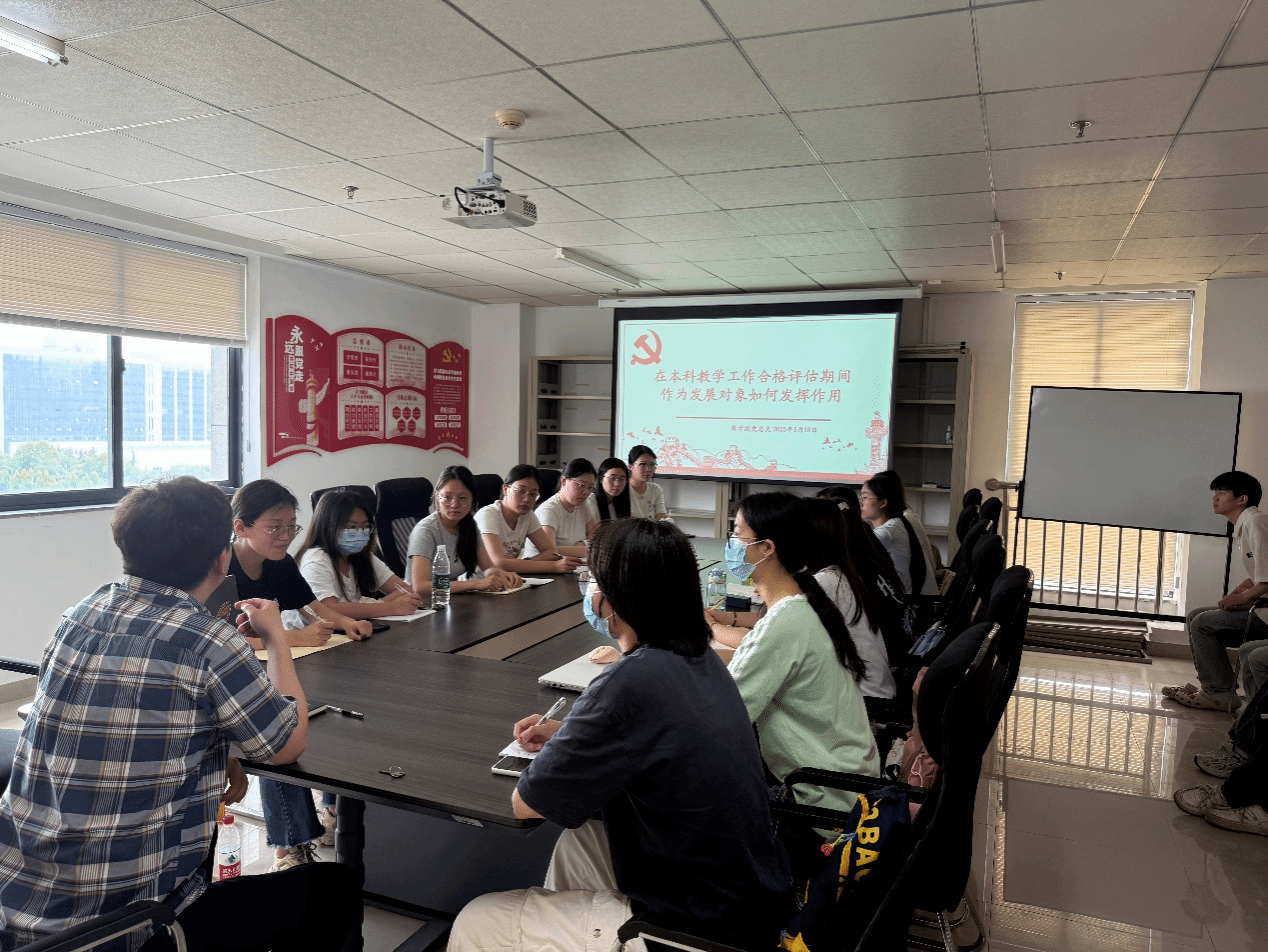 5月18日下午14:30在综合楼819,商学院党总支组织员杨洋围绕“在本科教学工作合格评估期间作为发展对象如何发挥作用”这一主题与当期发展对象们开展会议并提出要求。本次会议是2025年上半年发展对象培训班的研讨活动之一。