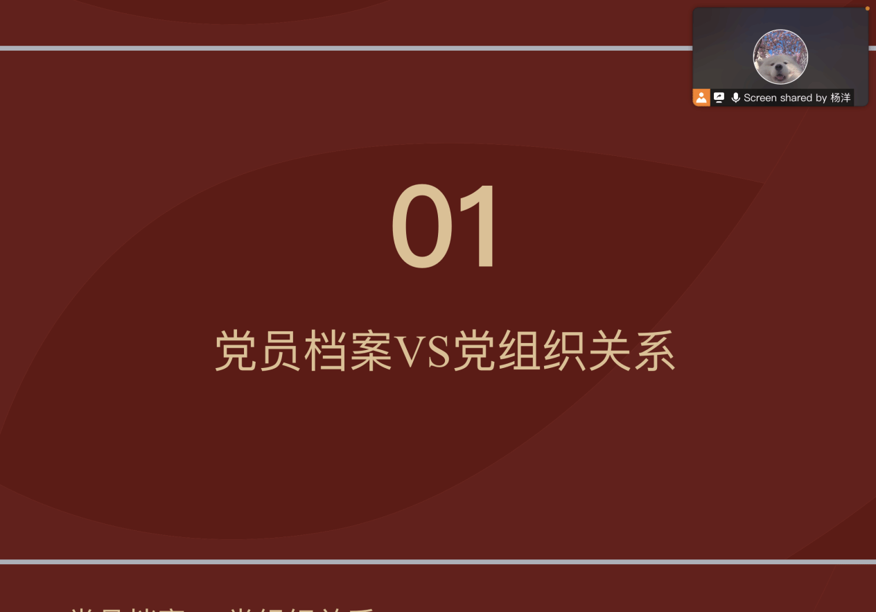 会议伊始,杨洋老师着重阐述了党员档案与党组织的关系。强调党员档案是党员身份的重要证明,也是党组织了解、考察党员的重要依据,它详细记录着党员从入党积极分子到正式党员期间的各项材料,与党组织紧密相连,关乎党员个人政治生活的连续性和规范性。
