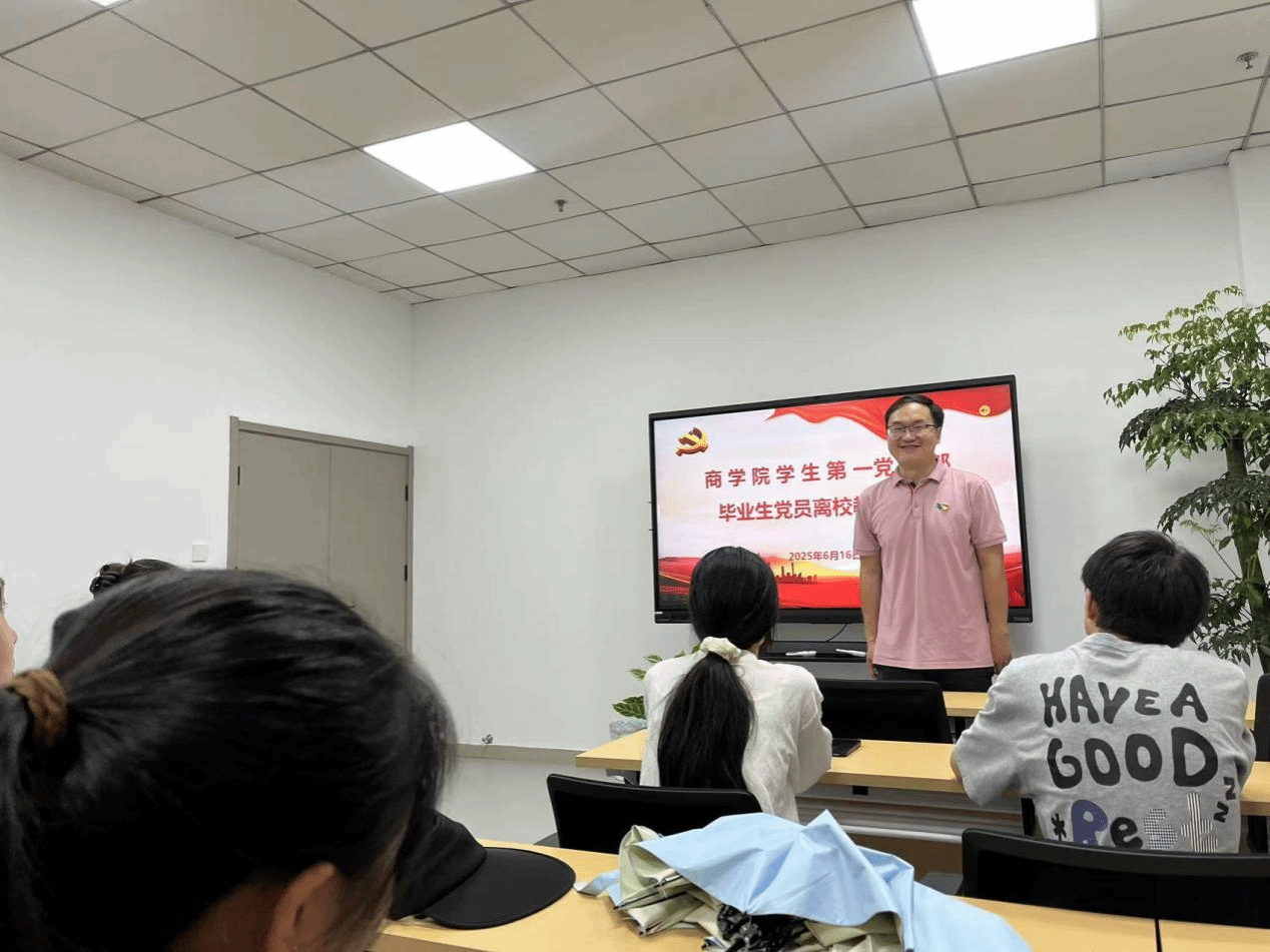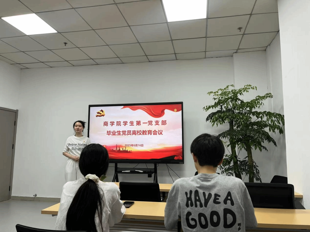 为进一步加强毕业生党员的思想政治教育,强化党员意识,引导毕业生党员坚定理想信念,在新的人生阶段继续发挥先锋模范作用,6月16日12:35,商学院学生第一党支部在XG12召开了2025届毕业生党员离校教育会议。此次会议由党支部精心组织策划,旨在为毕业生党员们上一堂意义深刻的“最后一课”,为他们即将开启的新征程提供有力的思想指引和行动指南。