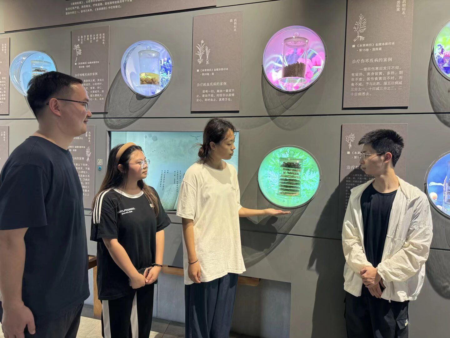 实践队成员们首先来到李时珍生平馆,在讲解员的讲述下,了解到李时珍出生于医药世家,科举不顺后投身医学研究,曾任太医院院判,因不满庸医作风辞官回乡,历经27年完成《本草纲目》。馆内的文物、古籍善本和蜡像,生动再现了其一生。随后,成员们参观药物馆,馆内的动植物、矿物标本展示了《本草纲目》中的各类药物,药用植物标本区让大家发现常见草木的治病玄机,百草药园则让成员们目睹了中药材的生长形态。