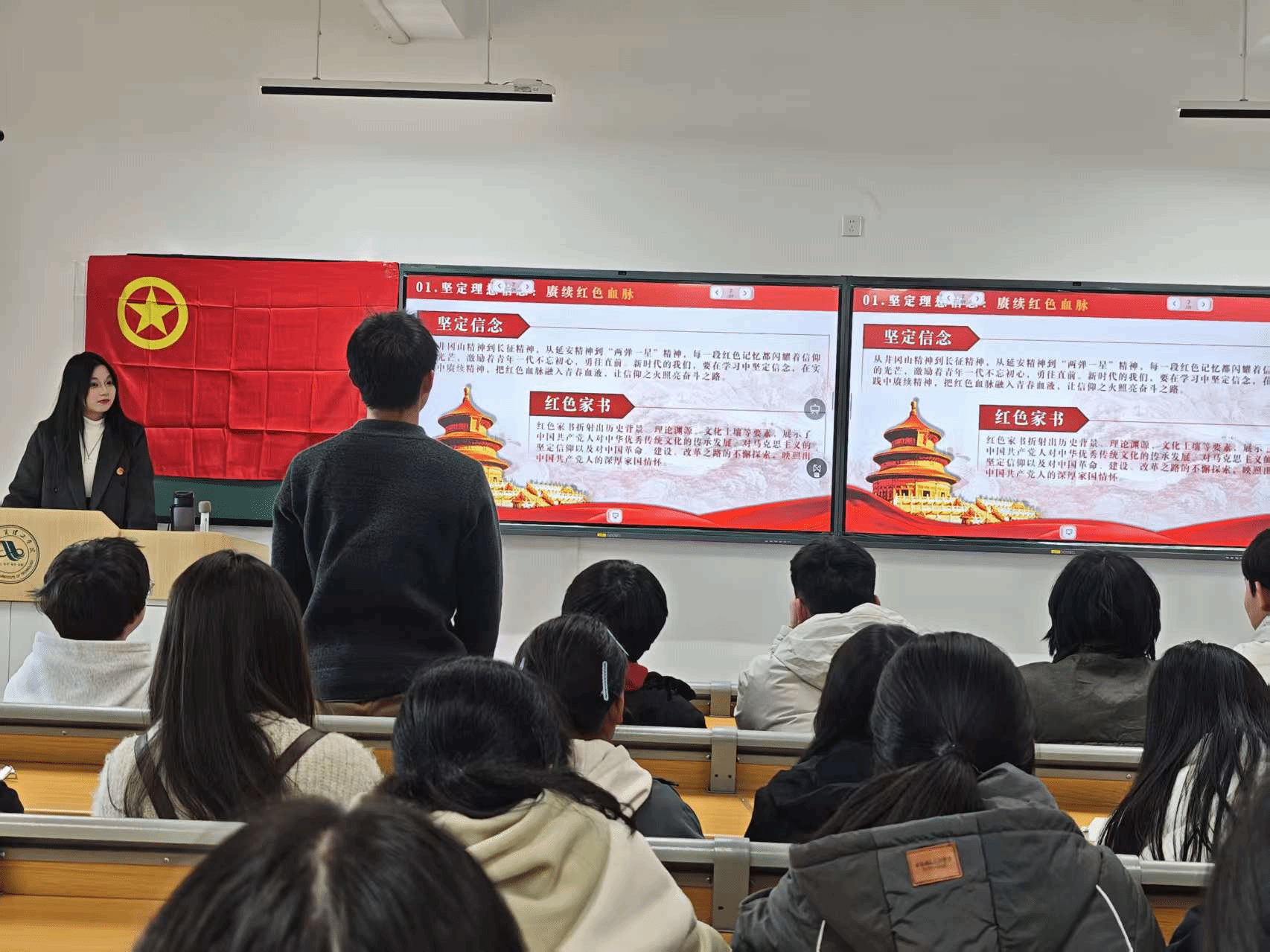 本次主题团日活动围绕“坚定理想信念”“书写青春梦想”“厚植家国情怀”“青春献礼祖国”等多个环节展开,带领同学们重温峥嵘岁月,感悟家国情怀的力量。团支书李意同学以“坚定理想信念,赓续红色血脉”为主题,从革命先辈抛头颅、洒热血的英勇事迹,讲到新时代青年在疫情防控、戍守边疆、科技攻关等领域的担当奉献,生动阐释了“家国情怀”的时代内涵与现实意义,并呼吁大家:“爱国不是一句口号,而是融入血脉的自觉行动。新时代青年要将个人理想融入国家发展伟业,在平凡中书写不凡。”