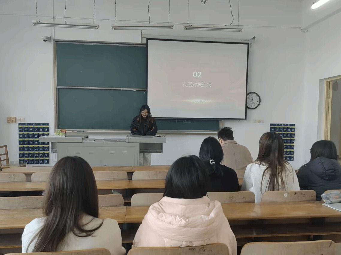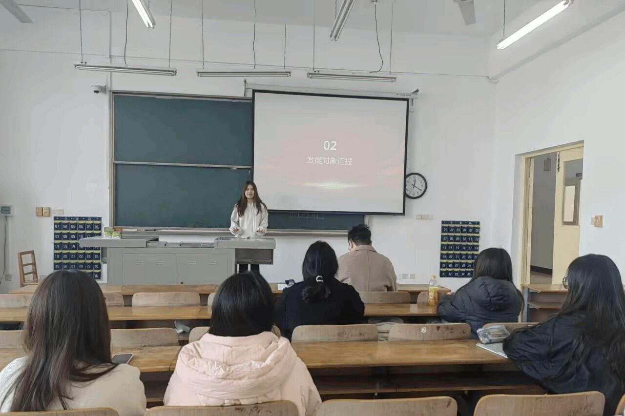 随后,发展对象王楠、王梦雪同志依次进行发展对象汇报工作。王楠同志汇报思想、学业、学生工作及服务同学情况,谈及在党组织培养下坚定了入党信念,在学习期间主动帮扶同学、组织学习活动,同时剖析自身理论学习不系统、应急能力不足等问题,表态将持续改进。王梦雪同志围绕思想提升、志愿服务与学业表现展开汇报,作为学院学生会骨干,她参与多项公益活动,学业成绩优异,真挚表达入党愿望与践行誓言的决心。